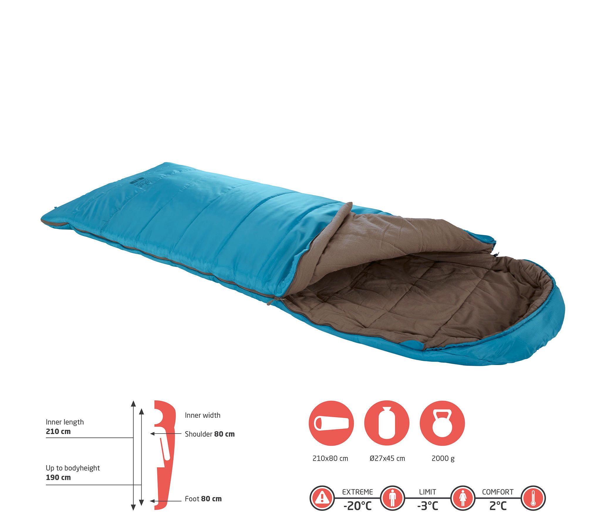 Grand Canyon Utah 190 -3°C Caneel Bay Left это трехсезонный спальный мешок, в первую очередь предназначенный для высоких пользователей и для туристов, предпочитающих более просторные спальные мешки, которые обеспечивают должную свободу движений во время сна. Его можно использовать при температуре до -3°C, а экстремальная температура использования -20°C. Более того, имея прямоугольную форму и молнию по периметру, данная модель в расстегнутом виде позволит согреться 2-3 людям, которые используют его в качестве широкого одеяла.