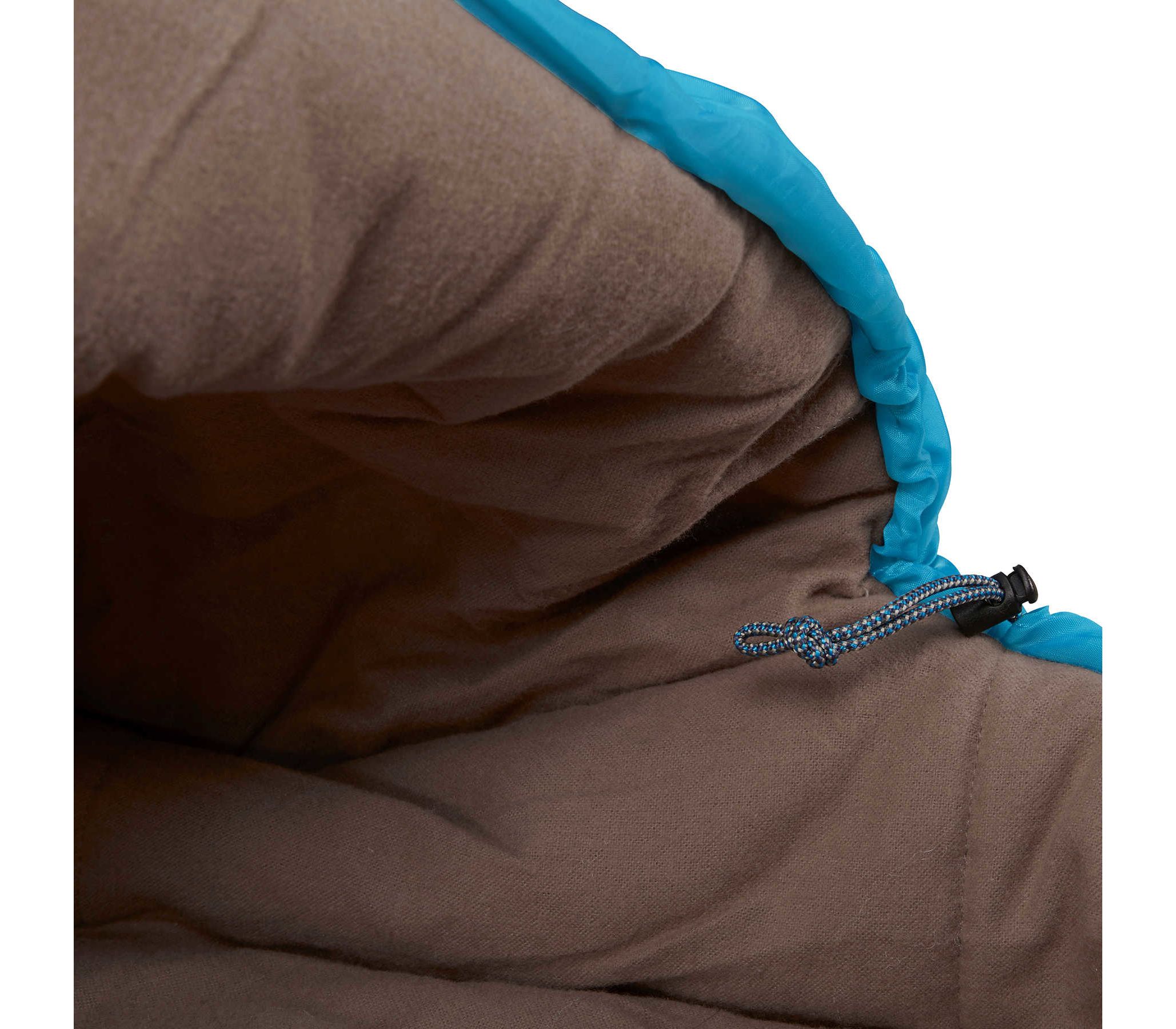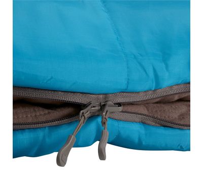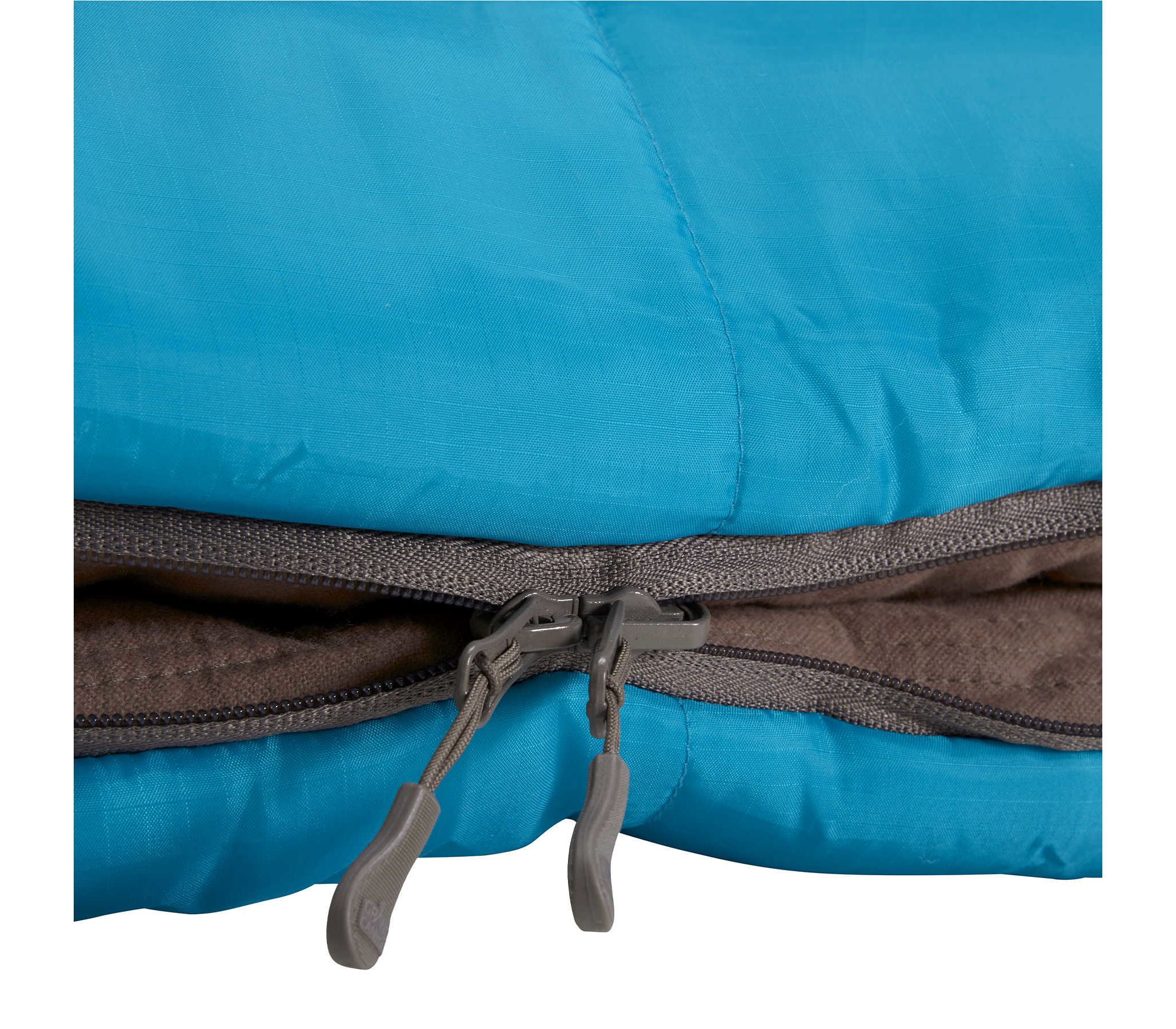 - Молния оснащена двумя замками, верхний из которых - двусторонний. Таким образом молния удобно расстегивается и застегивается как снаружи, так и изнутри, позволяя также открыть нижнюю часть спального мешка для проветривания.
