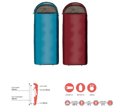 - Спальный мешок имеет молнию по всему периметру, благодаря чему в расстегнутом виде превращается в двуспальное одеяло шириной 160 см.