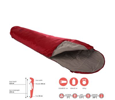 Летний спальный мешок Grand Canyon Whistler 190 13°C Red Dahlia Left - это идеальный выбор для вашего комфортного отдыха в путешествиях или под открытым небом. Благодаря форме "кокон", температуре комфорта до 13°C, максимальному росту пользователя до 190 см - он имеет наименьший размер и вес среди спальных мешков GRAND CANYON и сможет поместиться даже в велорюкзак или дорожную сумку.