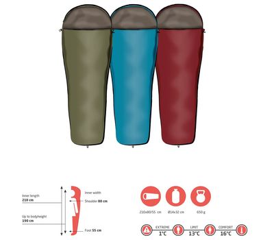 - Наполнитель: Micro Polyester Hollow Fibre (синтетический утеплитель, который характеризуется отличным соотношением теплоизоляционных свойств к собственному весу, а также имеет минимальную остаточную деформацию. Полые микроволокна впитывают и отводят влагу на внешний материал спального мешка).Молния: левая, двусторонняя