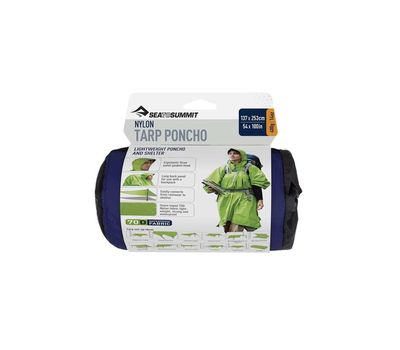 Нейлоновое пончо Tarp фирмы SeaToSummit имеет капюшон с шовной лентой, трехмерную конструкцию капюшона и широкий козырек. Оно идет в комплекте с чехлом овальной формы для максимальной компактности в сложенном виде и комфортного использования.