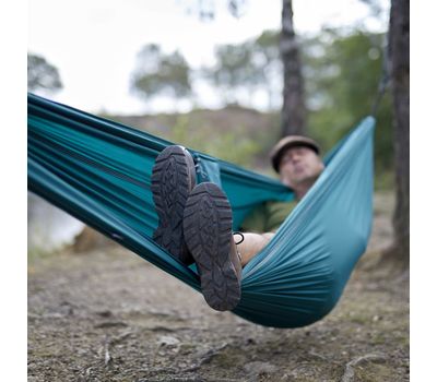 Благодаря использованию легкого и прочного парашютного нейлона, гамак Grand Canyon Bass Hammock Double Storm обладает невероятной прочностью и выдерживает вес до 180 кг, воздухопроницаемый и не впитывает влагу. Плотное плетение из тонкой нейлоновой нити позволяет гамаку анатомически подстраивается под контуры тела, делая отдых максимально комфортным и глубоким. Большие размеры 290х230 см обеспечивают достаточно места для комфортного расположения одного или двух человек. В сложенном состоянии гамак легко помещается в компактную сумку и весит всего 750 г, что делает его удобным для путешествий, походов, велосипедных прогулок и кемпинга.