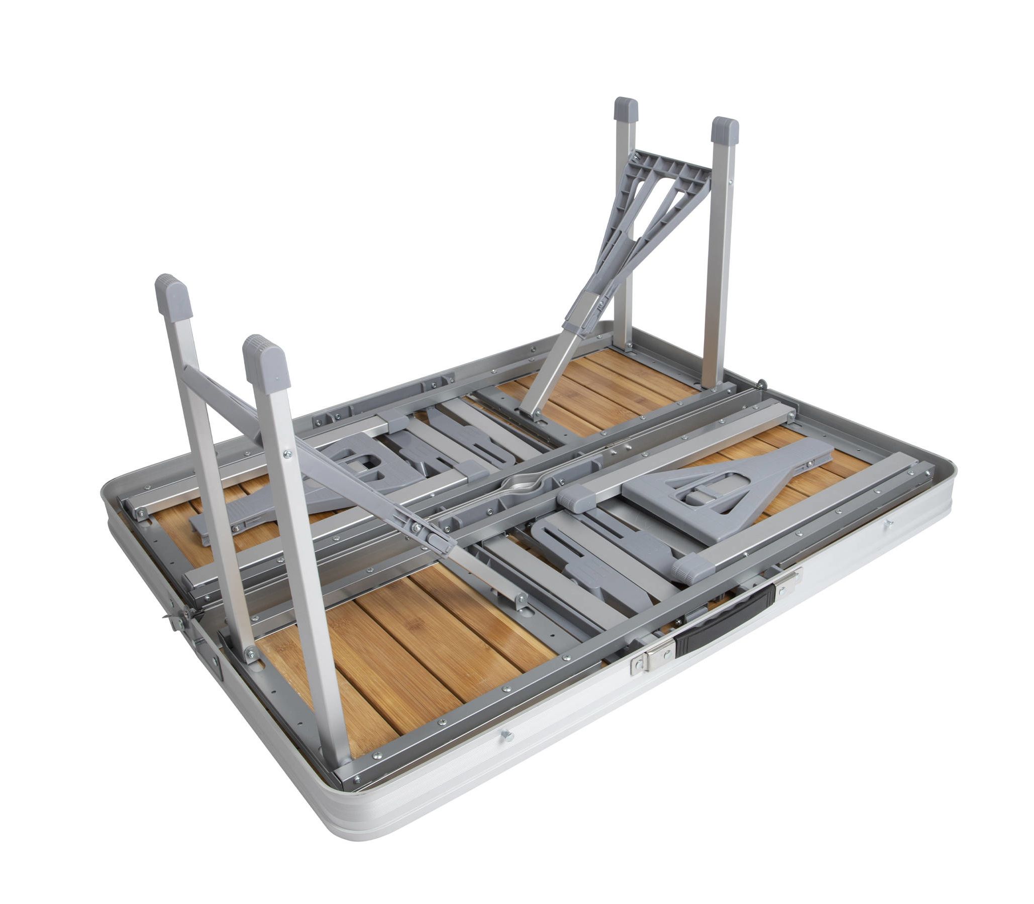 Кемпинговый набор из стола и четырех стульев Bo-Camp Bamboo Brown/Silver - это идеальное решение для экономии места и времени при сборах на пикник, на рыбалку или в кемпинг для небольшой компании, или семьи из четырех человек. Специальная конструкция позволяет в пару приемов разложить стол и стулья, а в сложенном виде набор представляет собой алюминиевый кейс с бамбуковыми стенками и ручкой, крайне удобный для хранения и транспортировки. При такой конструкции складывания нет необходимости отсоединять какие-либо части, и нет малейшей вероятности, что при сборке/разборке какие-то детали могут быть утеряны. Алюминиевый каркас имеет увеличенную прочность и допускает нагрузку на столешницу до 80 кг, и нагрузку на каждый стул не менее 100 кг. Кроме того, зща счет использования бамбуковой поверхности, выглядит стол просто шикарно и пользоваться им одно удовольствие.