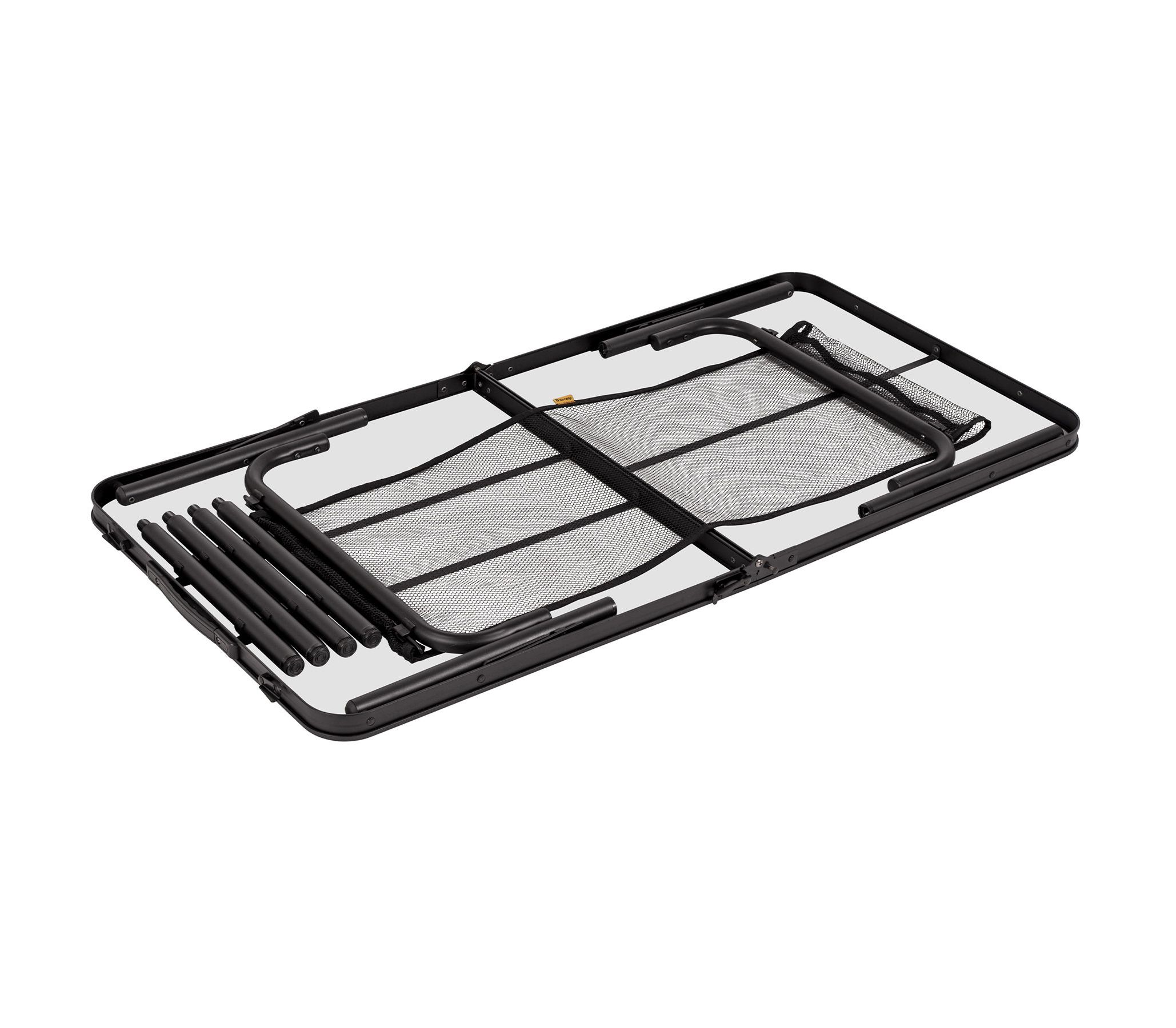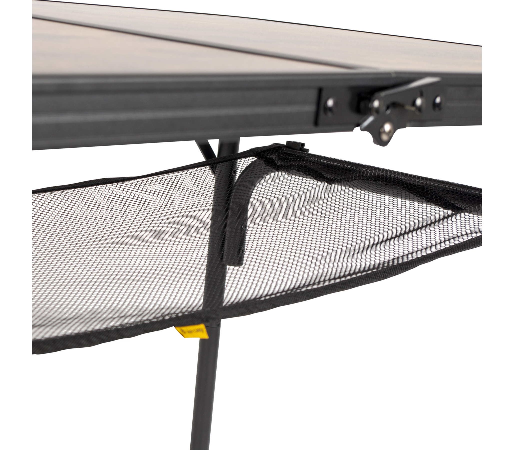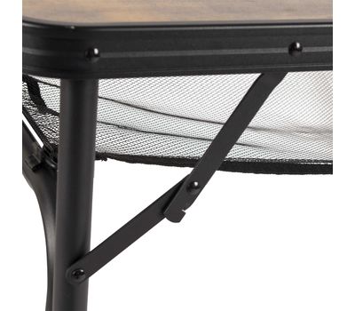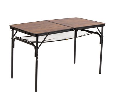 Стильный алюминиевый стол Bo-Camp Greene 120×60 cm имеет привлекательный внешний вид не в последнюю очередь благодаря столешнице, выполненной в цвете под дерево. Это полноразмерный кемпинговый стол для компании из 6-8 человек с возможностью установки двух уровней высоты – 37 и 70 см. Ножки стола можно отрегулировать на неровной поверхности с помощью регулировочных винтов. Кроме того, стол можно очень компактно хранить и переносить в виде кейса, благодаря съемным ножкам, складываемой столешнице и ручке. Кроме того, стол оснащен съемной сеткой, которая располагается под столешницей и служит в виде легкой полочки для продуктов и посуды.