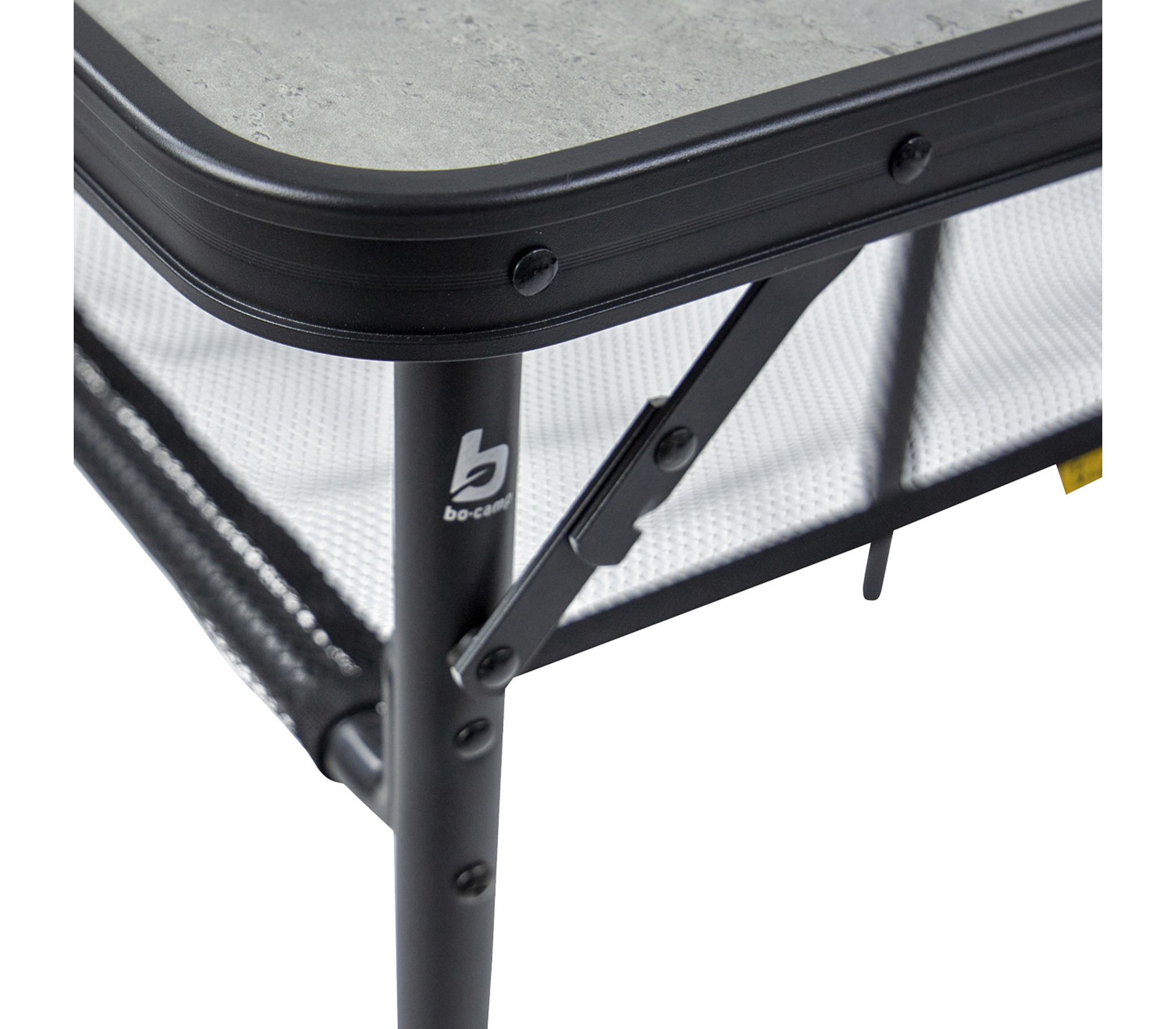 Легкая текстильная сетка, размещенная под столешницей, позволит хранить под столом посуду или продукты. Bo-Camp Northgate 60x45 cm в сложенном виде имеет толщину всего 4 см, что делает его удобным для хранения. Для удобства транспортировки предусмотрена пластиковая ручка.