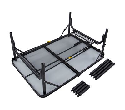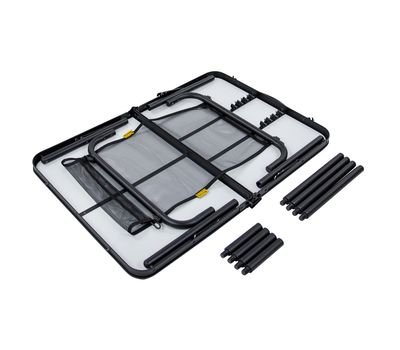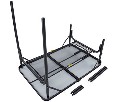 - Сбоку столешницы имеется пластиковая ручка для транспортировки стола в собранном виде