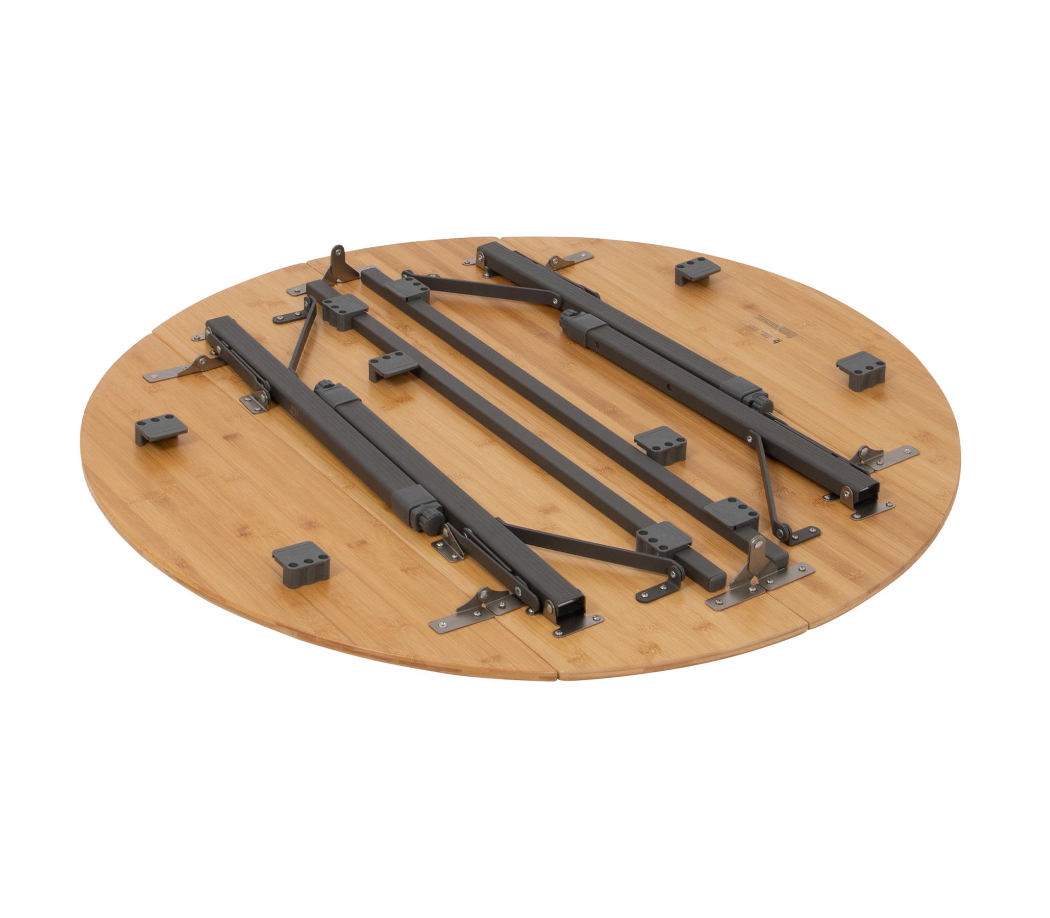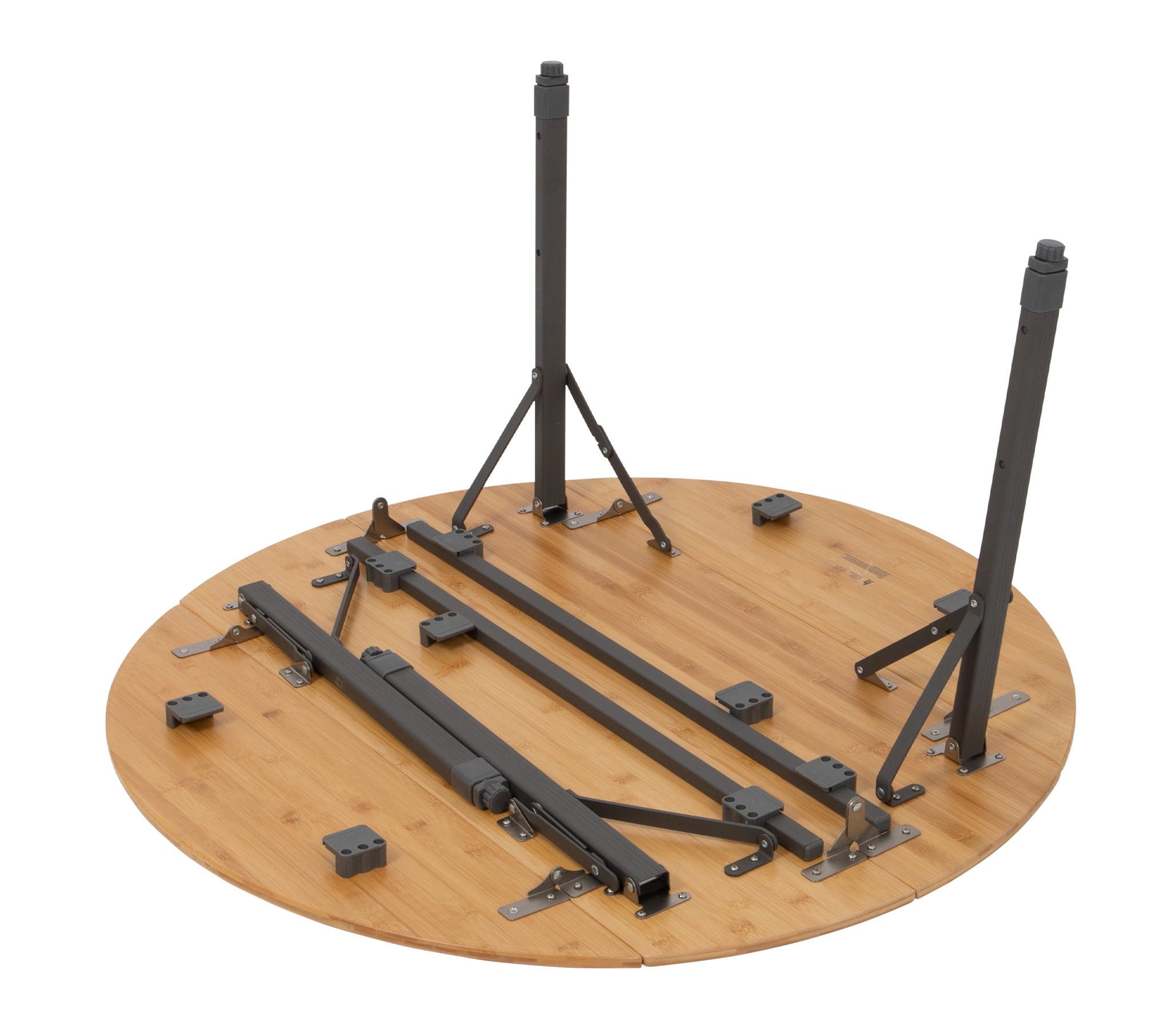 Круглая столешница выполнена из бамбука, экологически чистого и долговечного материала, который имеет естественный красивый вид. Поверхность стола покрыта водонепроницаемым покрытием, что придает столешнице дополнительную прочность и долговечность. Телескопические ножки позволяют регулировать и устанавливать высоту стола в трех разных положениях (45, 52 и 65 см). В сложенном состоянии стол имеет компактные размеры, а благодаря наличию чехла в комплекте, его можно удобно хранить и переносить. Bo-Camp Poundbury Round 90x90 cm Brown - это не просто стол, а стильный и практичный аксессуар, который придаст комфорт и неповторимые впечатления вашим путешествиям и отдыху.