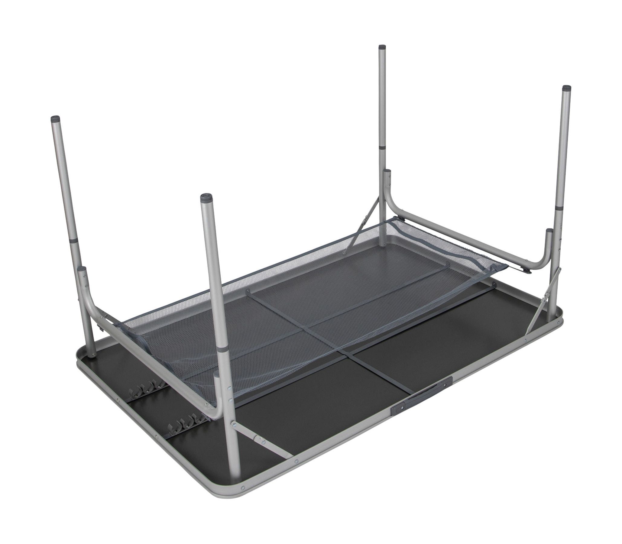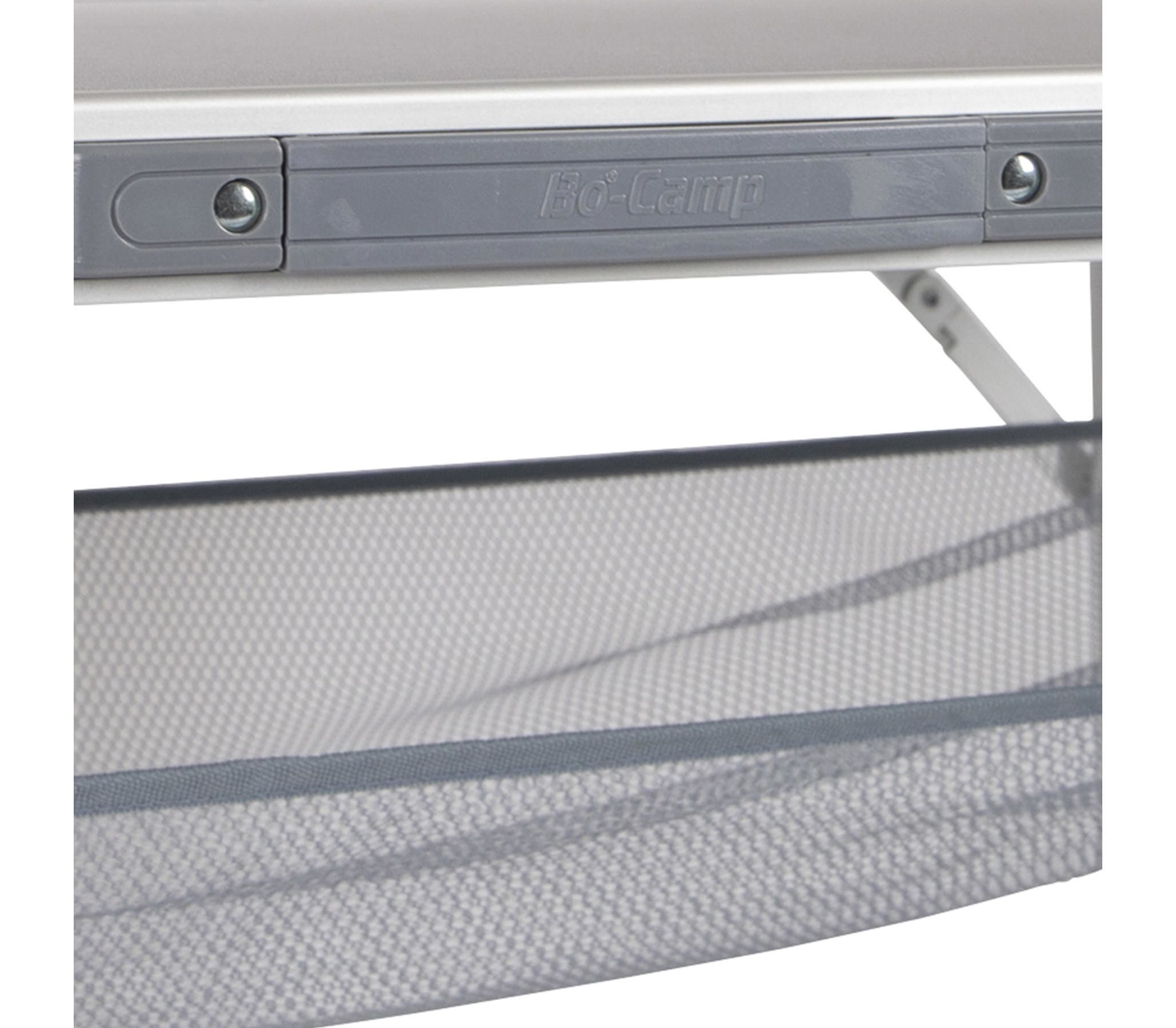 Термостойкая и водостойкая столешница позволяет использовать этот стол по назначению, не беспокоясь о том, что его поверхность будет повреждена горячей или мокрой посудой. Стол имеет длинную и широкую столешницу и две возможные высоты установки, а также микрорегулировку каждой ножки для того, чтобы выставить столешницу горизонтально на неровной местности. Bo-Camp Premium 118x78 cm в сложенном виде представляет собой наиболее плоскую модель производителя, что делает его удобным при хранении. Для удобства транспортировки предусмотрена пластиковая ручка. Раскладной стол Bo-Camp Premium 118x78 cm - полноценный широкий стол для комфортного размещения шести человек.