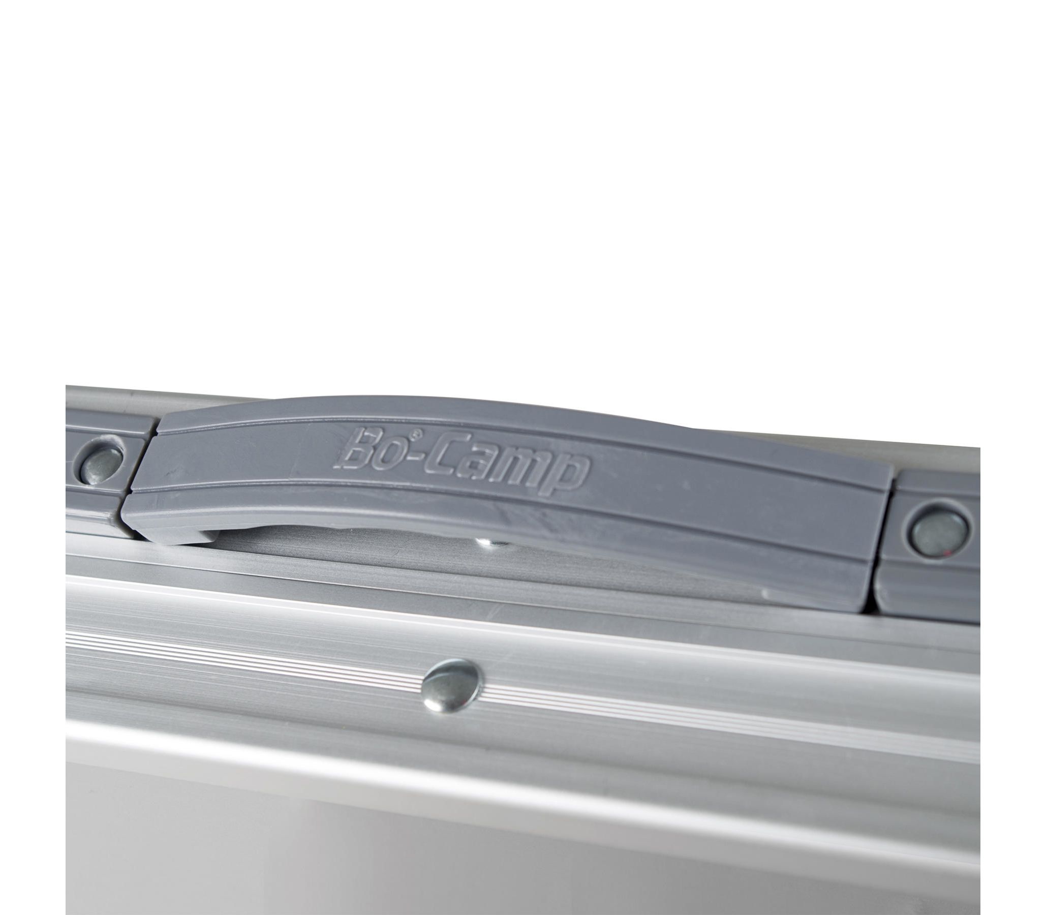 Bo-Camp Premium Oval можно очень компактно хранить и переносить в виде кейса, благодаря складной столешнице и ручке. В транспортном положении стол зафиксирован четырьмя замками, предотвращающими самопроизвольное раскрытие.