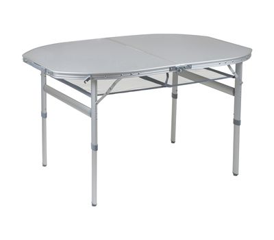 Большой и одновременно легкий стол с жаро и влагостойкой столешницей Bo-Camp Premium Oval 120x80 cm Grey из коллекции Industrial станет незаменимым спутником вашего отдыха в саду, на даче или на природе. Размер и форма столешницы позволяет разместить за ним до 8 человек, а сетка под столешницей поможет не загружать поверхность вещами. Корпус стола, выполненный из алюминия, он легко складывается, а разборные телескопические ножки стола регулируются по двум уровням (36/70 см). Ножки также можно отрегулировать на неровной поверхности с помощью винтов.