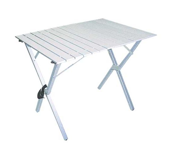 Складной алюминиевый стол, отлично подходит для небольших застолий, кемпинга, корпоративного отдыха на природе. Столешница при транспортировке сворачивается в рулон. В комплекте транспортировочный чехол с отделениями.