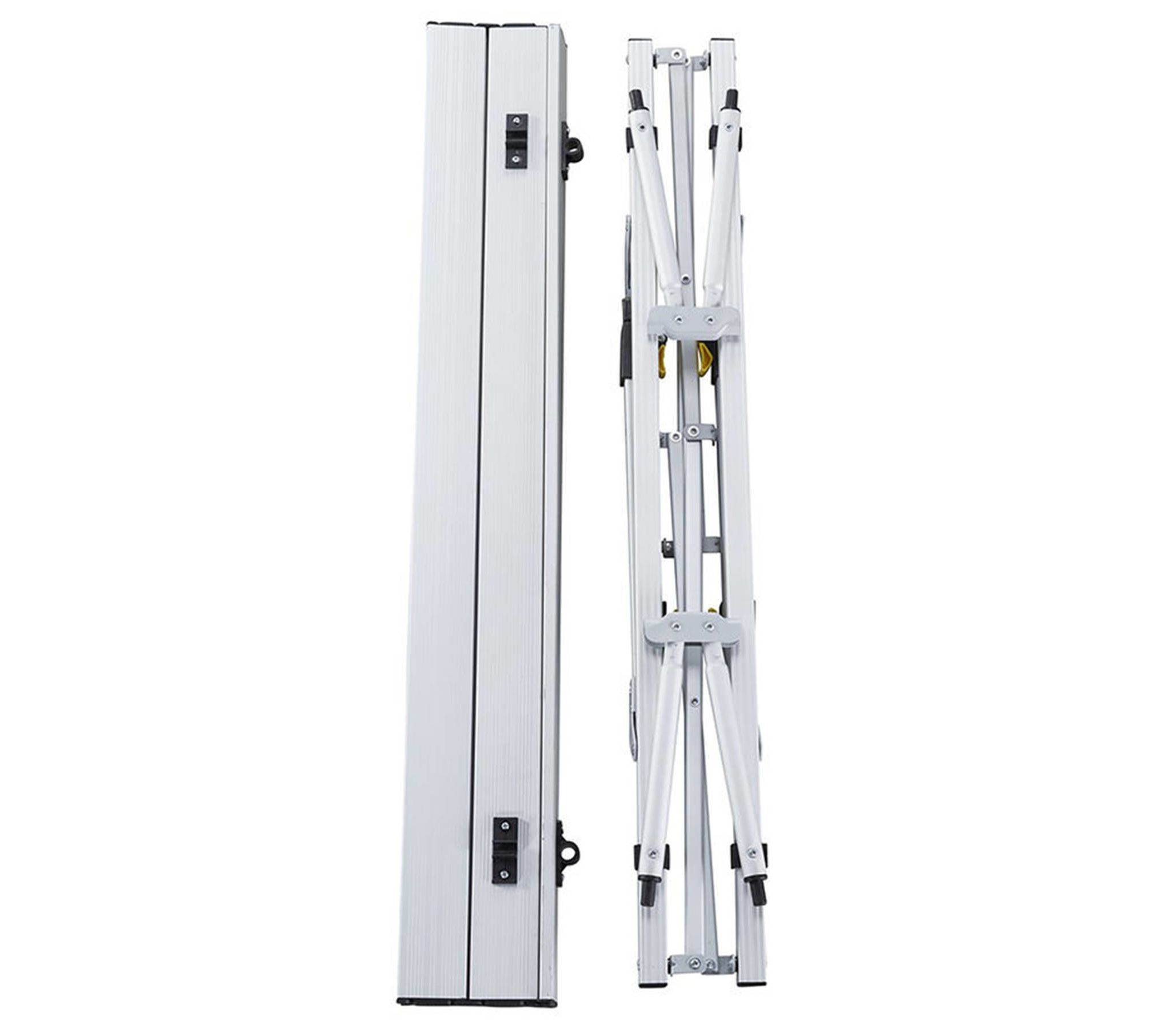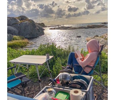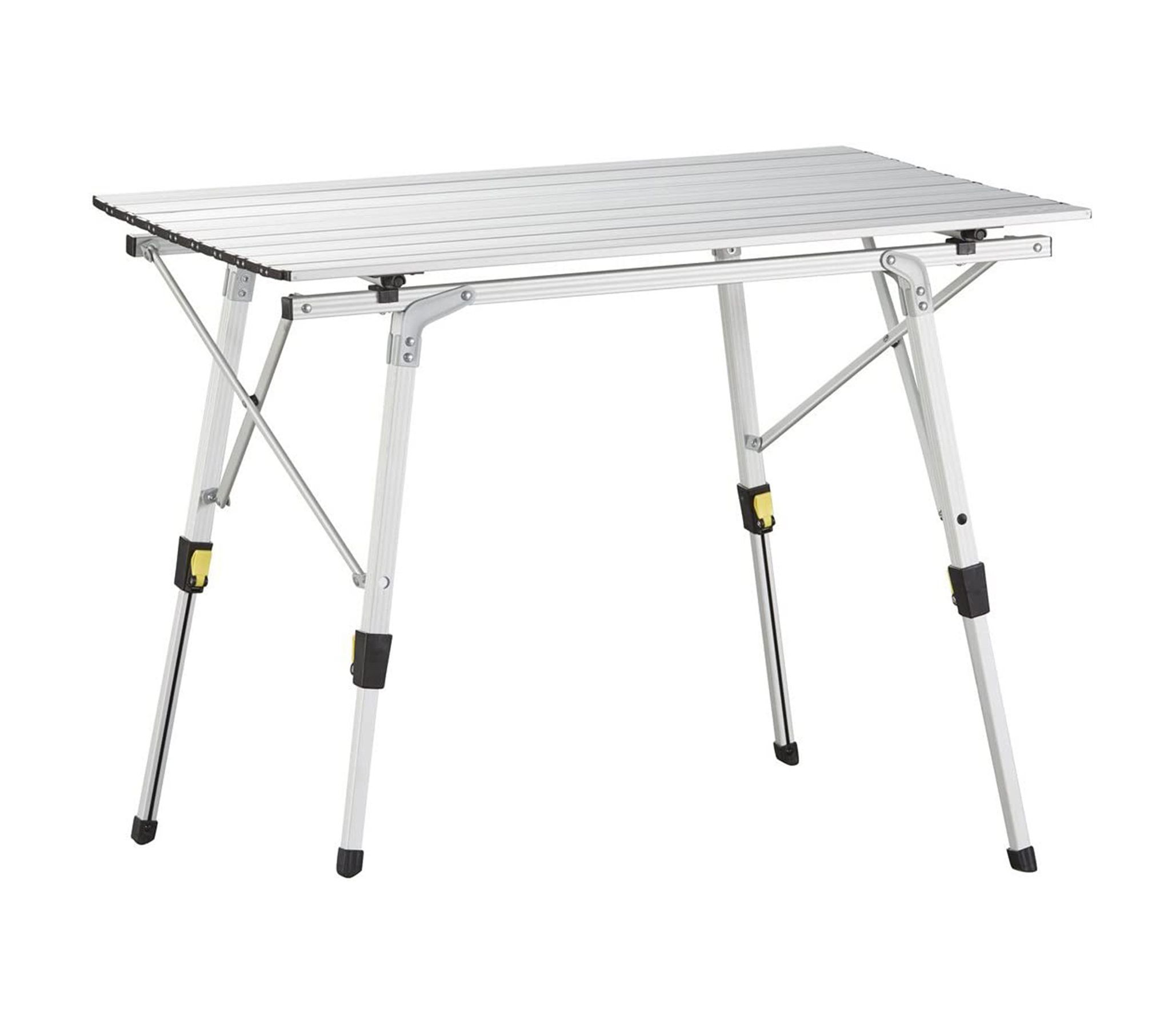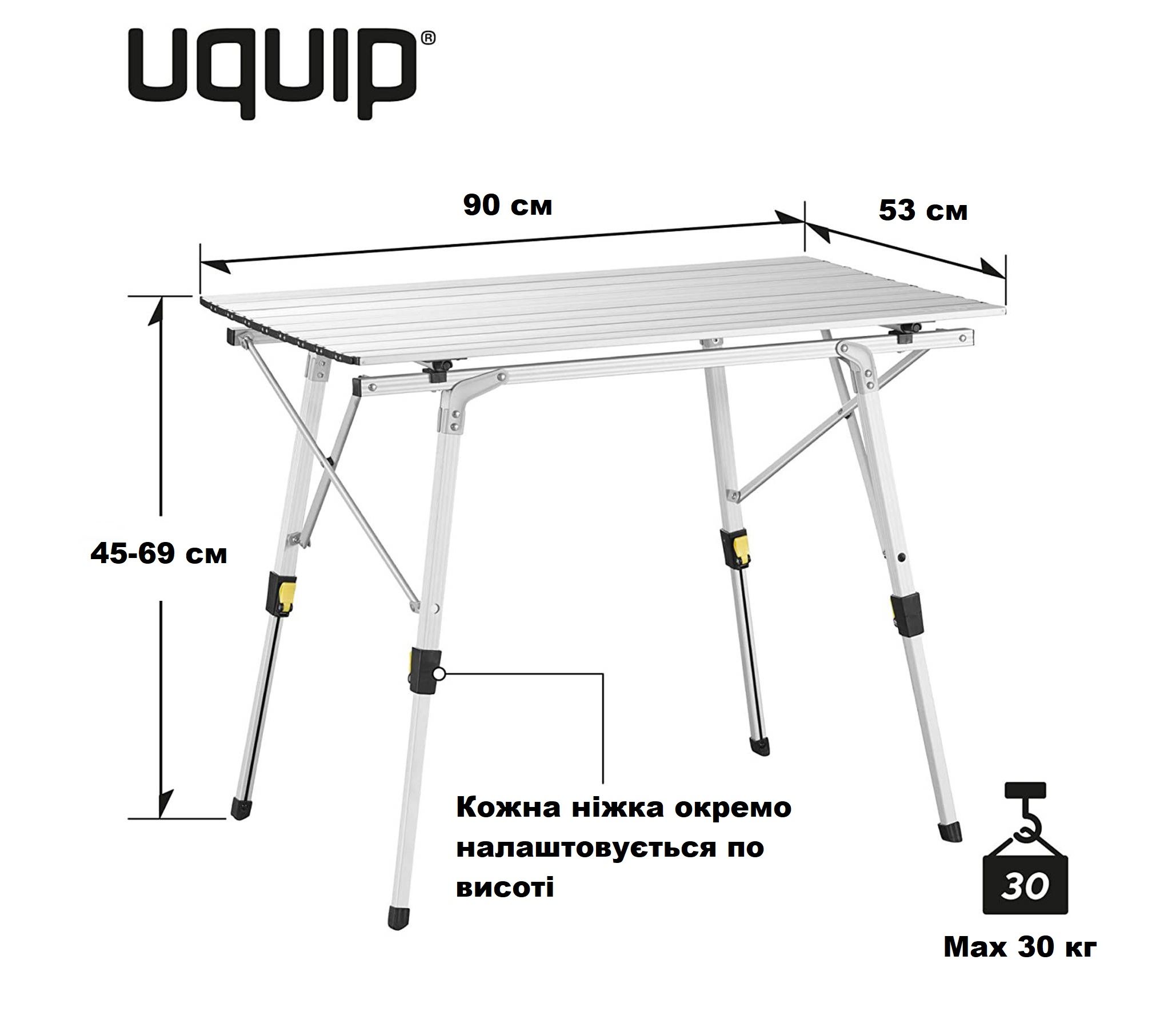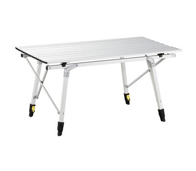 Столешница имеет достаточные размеры, чтоб за столом комфортно разместились 4 человека. В сложенном виде стол компактно размещается в чехле. Алюминиевая поверхность столешницы легко чистится, и является максимально гигиеничной, поскольку алюминий не формирует среду для размножения микробов.