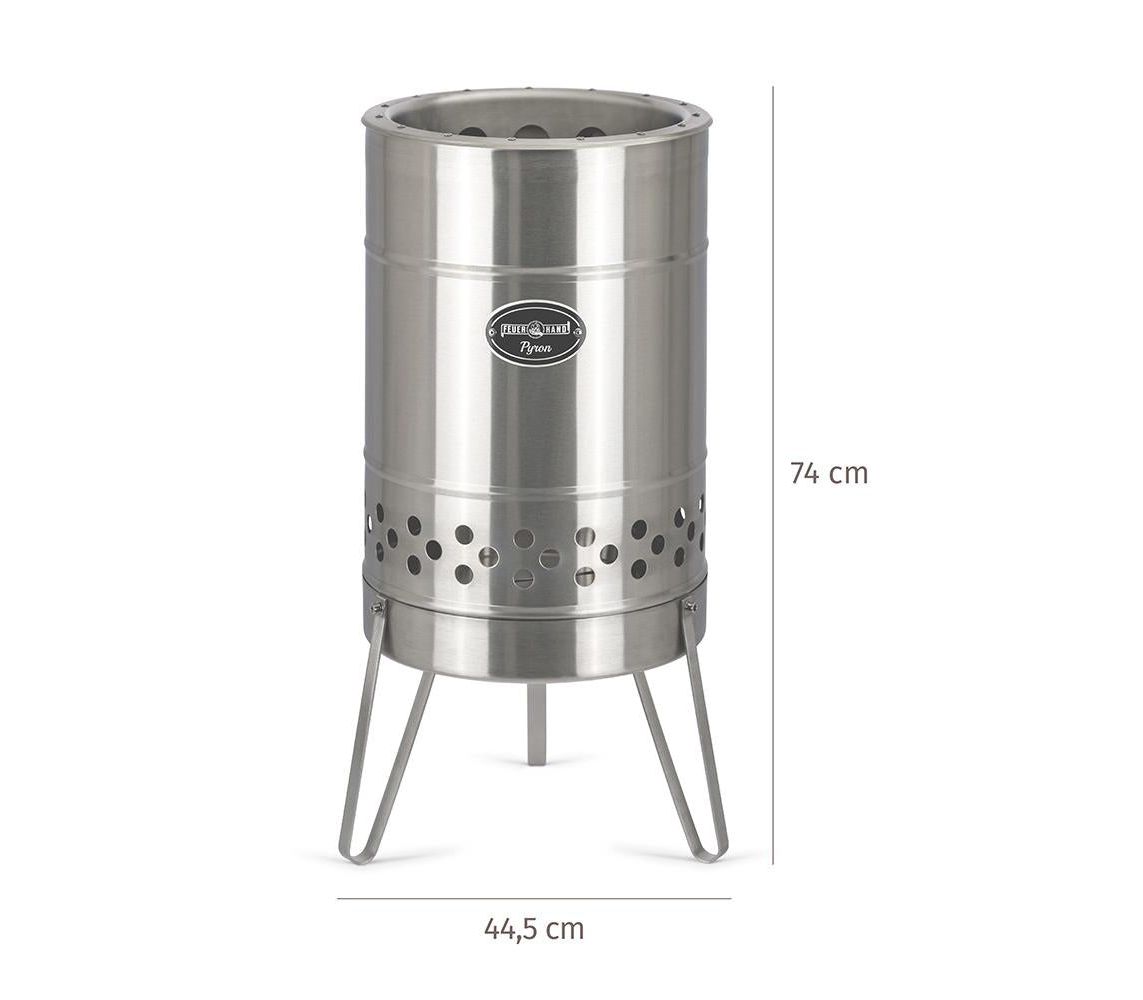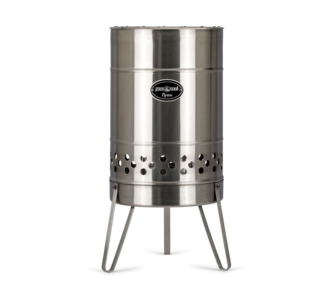 Pyron — портативна діжка-мангал для вогню від німецького бренду Feuerhand. Охайне та безпечне рішення для тераси, саду, кемпінгу. Окрім практичної функції обігріву та освітлення виконує також декоративну роль. Доповнює простір «цивілізованим» багаттям, яким зручно керувати і яке легко прибрати після використання.