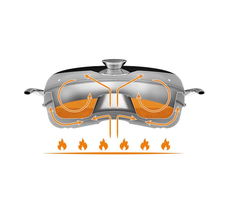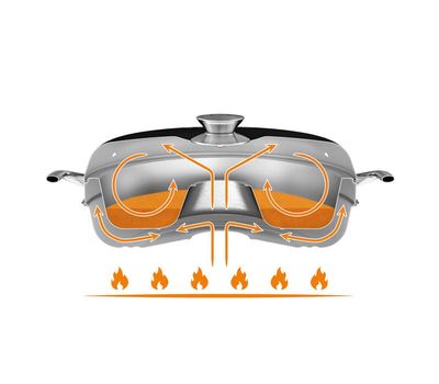 - Кільцева конструкція з трьох частин із продуманою моделлю теплообміну. Страви рівномірного прогріваються з усіх боків.