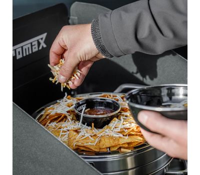 Компактна кемпінгова духовка від німецького бренду Petromax. Забезпечує трирівневу циркуляцію гарячого повітря, що пропікає страву з усіх боків. Сумісна з різними джерелами тепла: відкритим вогнем, газовими та електричними плитами. Повністю зроблена з нержавіючої сталі.