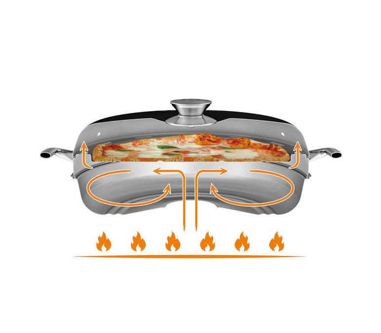 - Дві петлеподібні ручки на деку — для зручного перенесення. Страву можна подавати на стіл прямо в посудині, доки вона парує і шкварчить.