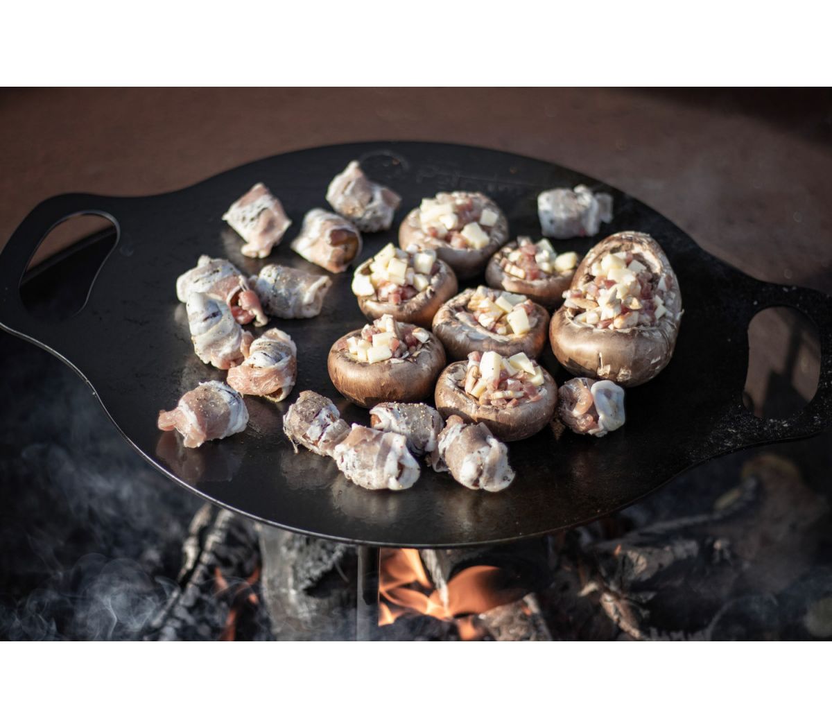 Планча. Встановлена над вогнищем, дозволяє професійно готувати м'ясо та овочі a la plancha: із золотистою скоринкою і ароматом копчення. Поверхня швидко й сильно розжарюється, що ідеально для стейків. Має різні температурні зони: доки ви готуєте основну страву на розпеченій центральній ділянці, закуски підігріваються на краях в очікуванні подачі. Планчу виготовлено з проолієної харчової сталі, що набуває природних антипригарних властивостей під час використання.