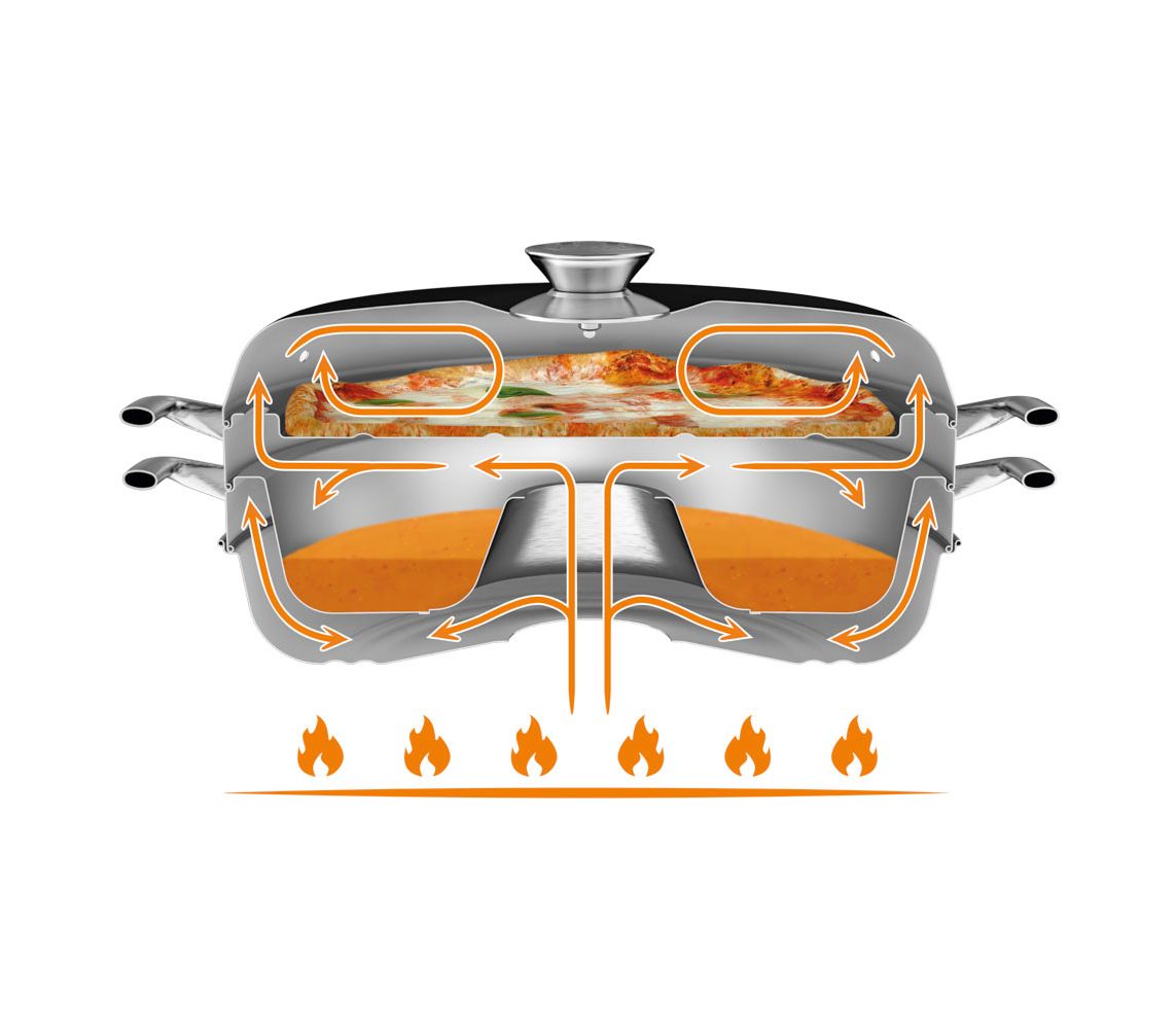 - Перфорація на краях дека формує латеральні потоки гарячого повітря, що йдуть знизу вгору. За аналогією з домашньою духовкою.