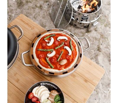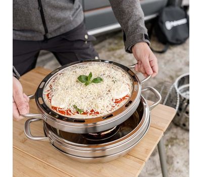 Деко з нержавіючої сталі — доповнення до кемпінгової духовки Petromax Camping Oven. Оптимально підходить для піци, булочок і печених картопляних скибочок. Продумана система теплообміну забезпечує стравам рівномірне пропікання та хрумку скоринку.