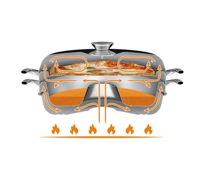 - Гаряче повітря циркулює в нижній камері духовки — під дном дека і вздовж його бічної поверхні.
