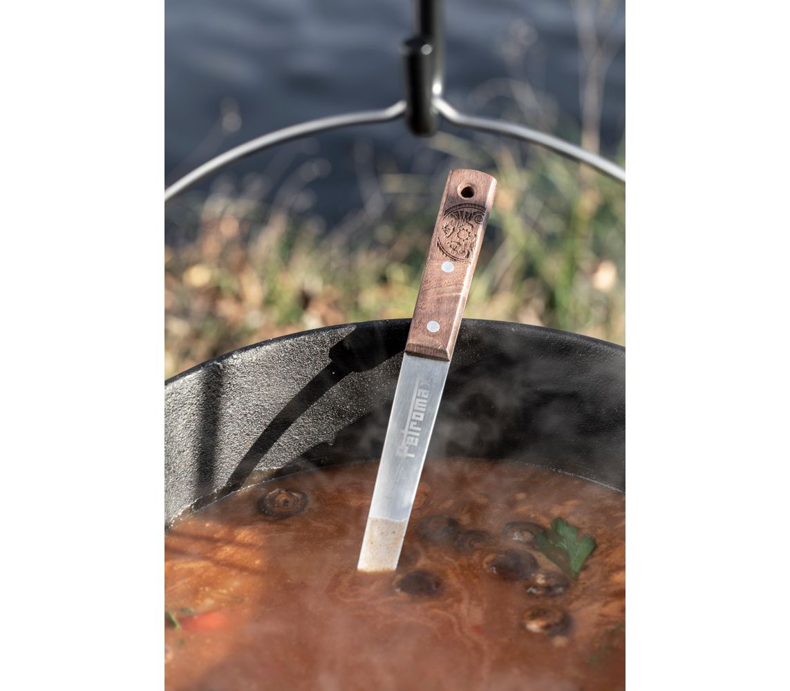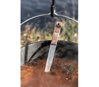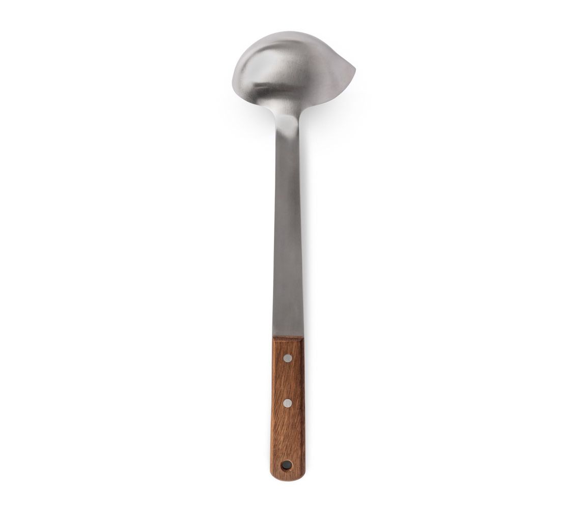 Сталевий черпак від німецького бренду Petromax. Високоякісна нержавіюча сталь міцна й довговічна, а ручка з горіхового дерева приємна на дотик. Менша модель завдовжки 30 см вміщує 100 мл. Більша, завдовжки 50 см, зачерпує до 250 мл за раз.