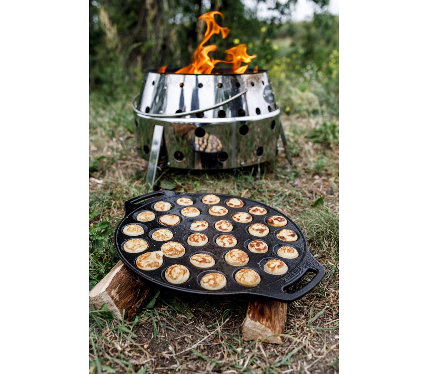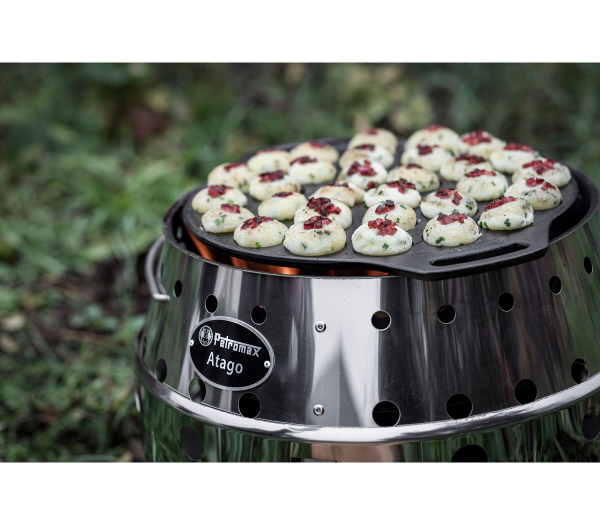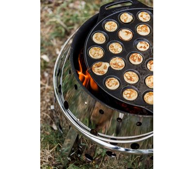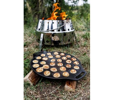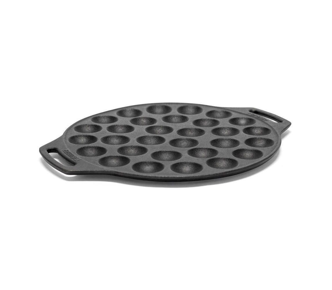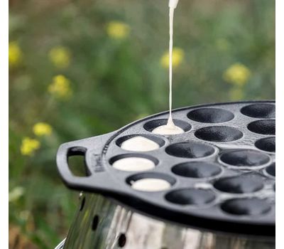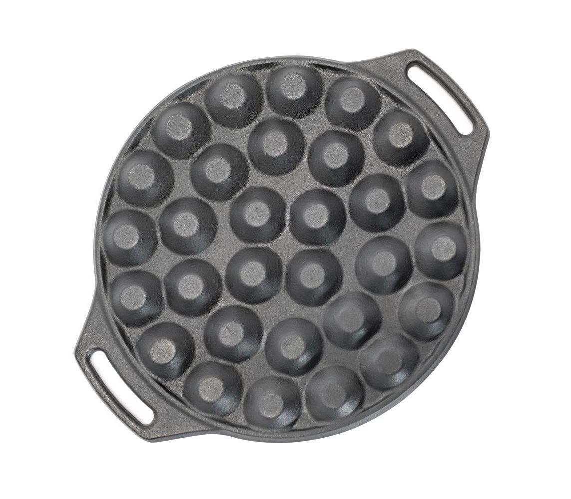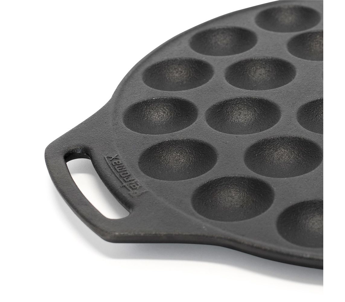 Чавунна форма для випічки пофертьє та інших міні-десертів від німецького бренду Petromax. Має 30 відсіків, швидко прогрівається завдяки низькому профілю. Створена для готування на багатті, а також кемпінгових мангалах Petromax: Atago і Fire Barbecue Grill. Підходить для домашньої духовки та плити. Доповнена двома ручками-петлями для зручного перенесення.