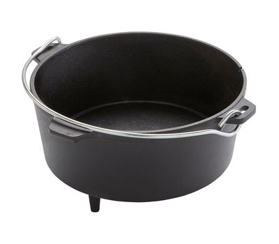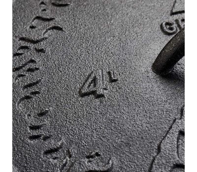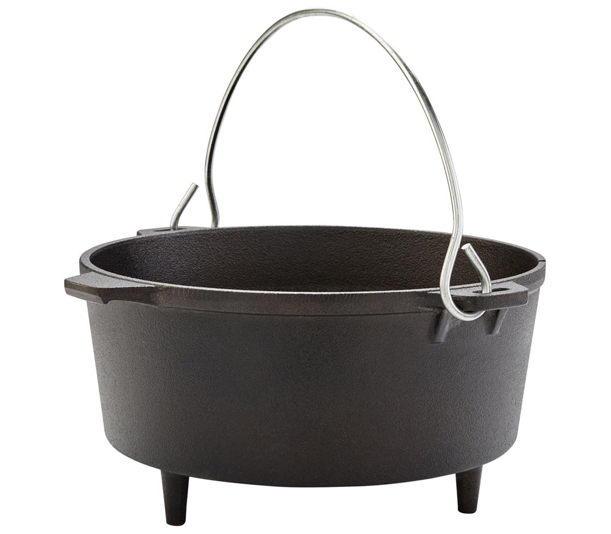Материал казана - массивный литой чугун, который обеспечивает равномерное распределение тепла по всей поверхности. Это позволяет готовить блюда без пригорания и с минимальным использованием жира, а пища сохраняет свой естественный вкус и аромат. Большим плюсом является прочная стальная ручка, позволяющая подвешивать казан над костром - это удобно для приготовления блюд в подвесном режиме. Диаметр 25 см и вместимость 4 литров делают эту модель идеальной как для небольших компаний, так и для семейной готовки на природе. В таком казане легко приготовить плов, жаркое, бограч, тушеные овощи или суп.
