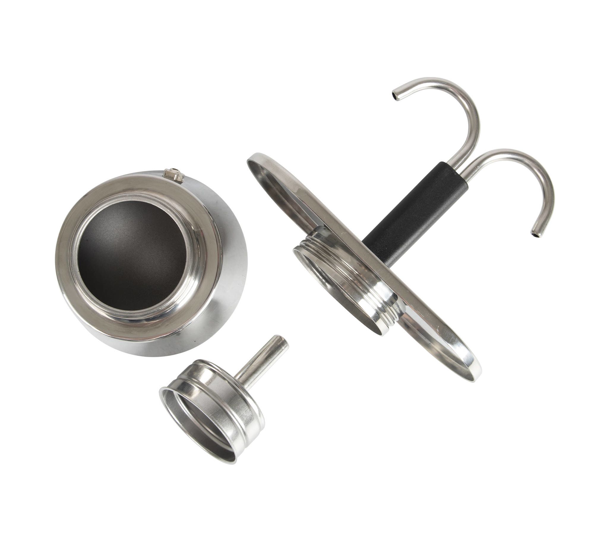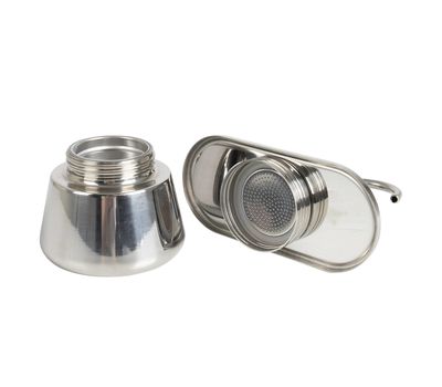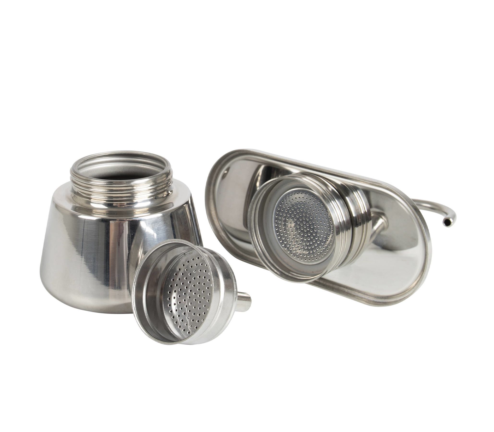 Кофеварка состоит из трех основных частей: нижнего резервуара для воды, воронки-фильтра для молотого кофе и крышки. Приготовленный напиток наливается непосредственно в чашки, установленные на подставке. Рассчитана она на 100 мл готового ароматного напитка. Кофеварку можно использовать с любым типом нагревающей поверхности. Она очень легкая и компактная и найдет свое место на вашей кухне и в походном рюкзаке.