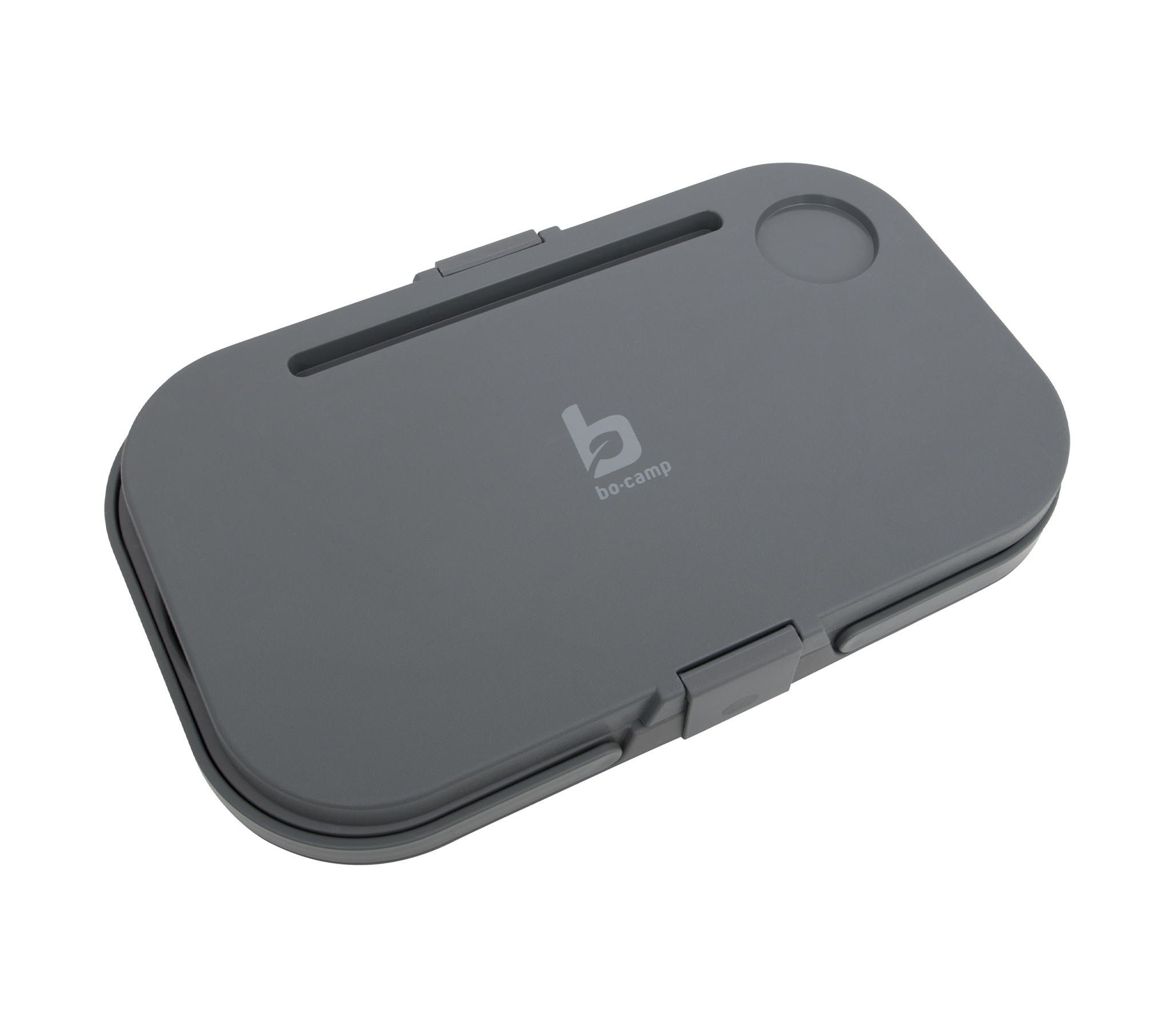 Благодаря жесткому дну и бортикам, корзина Bo-Camp Foldable Box With table Top 17L Grey имеет устойчивую форму и выдерживает значительный вес. Однако ее наибольшим преимуществом является возможность складываться. Стенки изготовлены из высококачественного силикона, легко складывающегося для хранения. В сложенном 36х17 см. Это позволяет разместить в ней стандартную пластиковую двухлитровую бутылку и еще много разных вещей поверх нее. Крышка корзины оборудована пластиковыми застежками, которые позволяют надежно закрепить ее на месте и удерживать вещи и продукты внутри в случае переворачивания. Кроме того, крышка может быть использована в качестве столика высотой 16 см благодаря складным ножкам. Она также имеет подставку для стакана и планшета, что придает дополнительное удобство при использовании. Корзина оборудована удобными ручками для транспортировки.