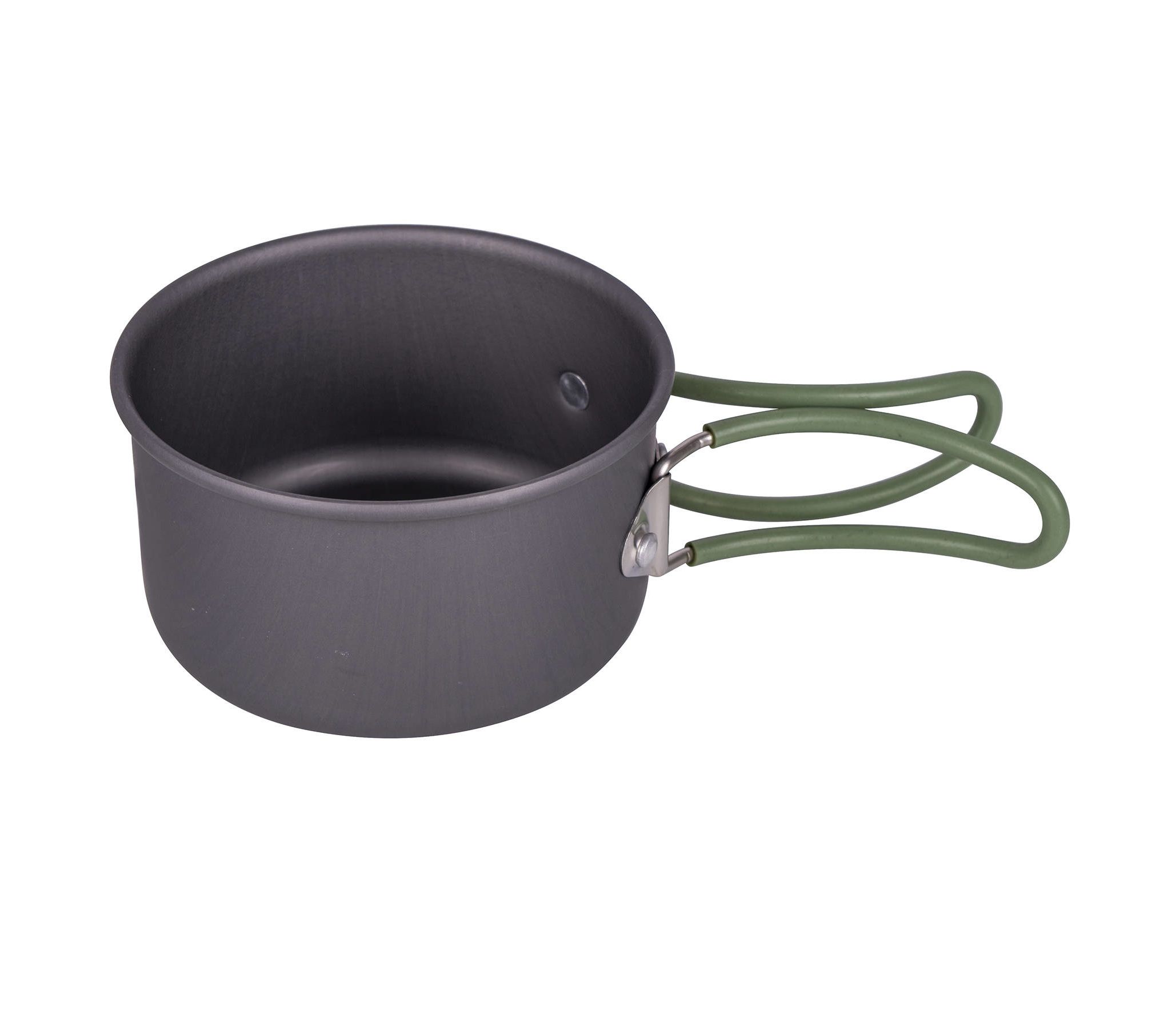 Bo-Camp Explorer 2 Pieces Hard Anodized Anthracite/Green - это компактный и легкий комплект алюминиевой посуды для 1-2 человек, идеальный для похода или кемпинга.