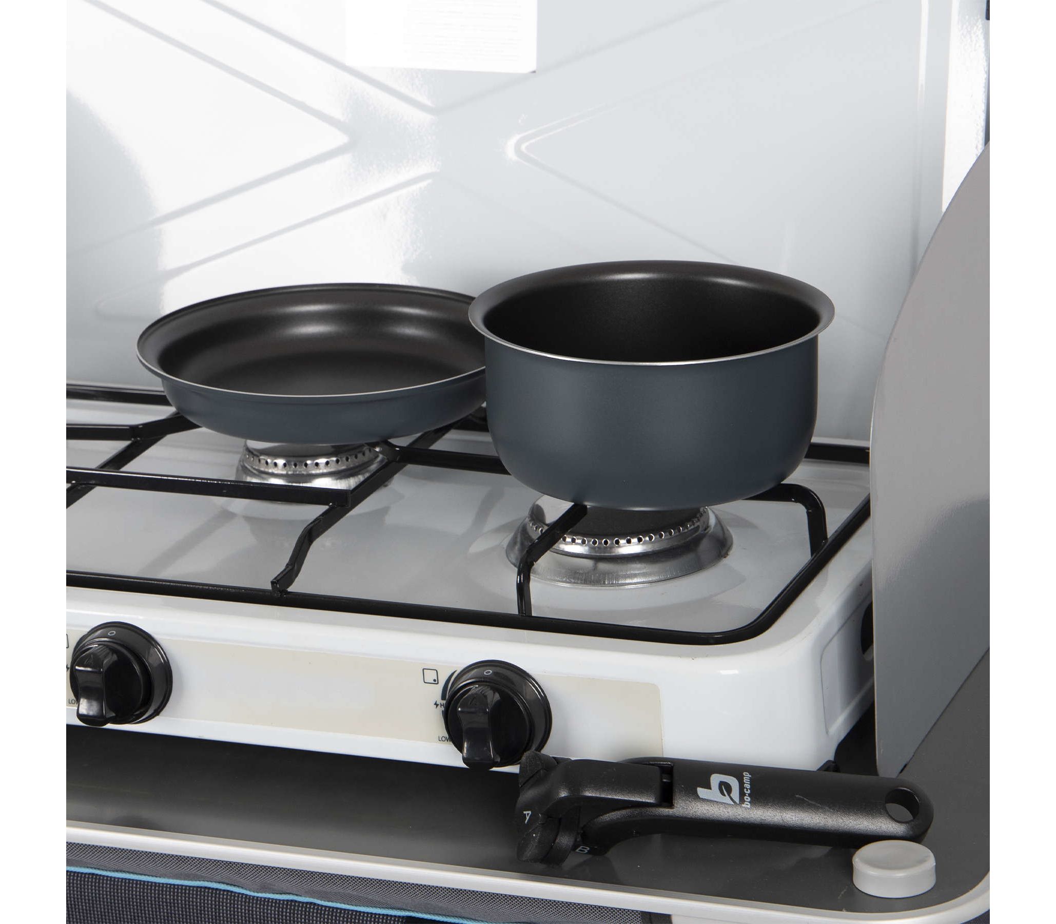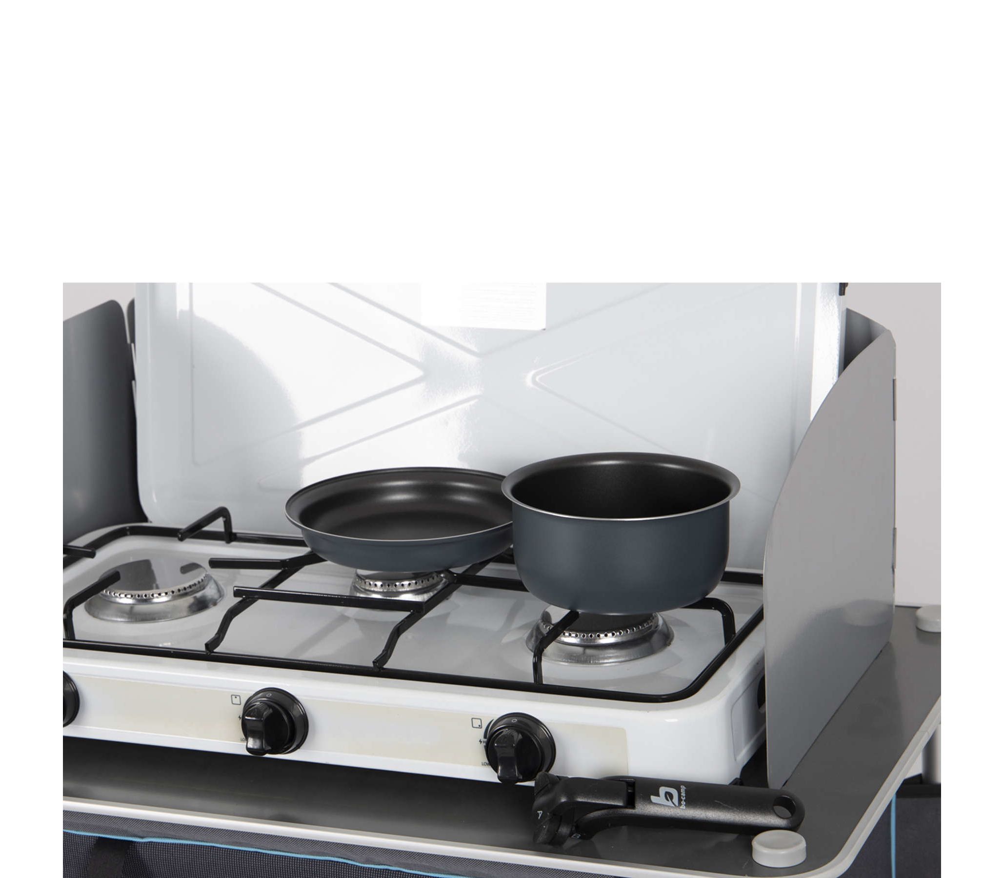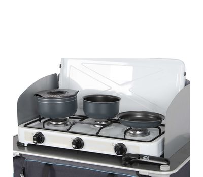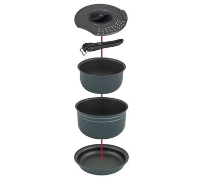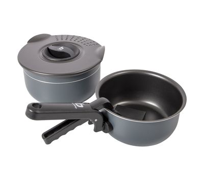 Bo-Camp Trekking 5 Pieces Anthracite – это компактный и практичный набор посуды с антипригарным покрытием для кемпинга и экспедиций, рассчитанный на группы до 3-4 человек.