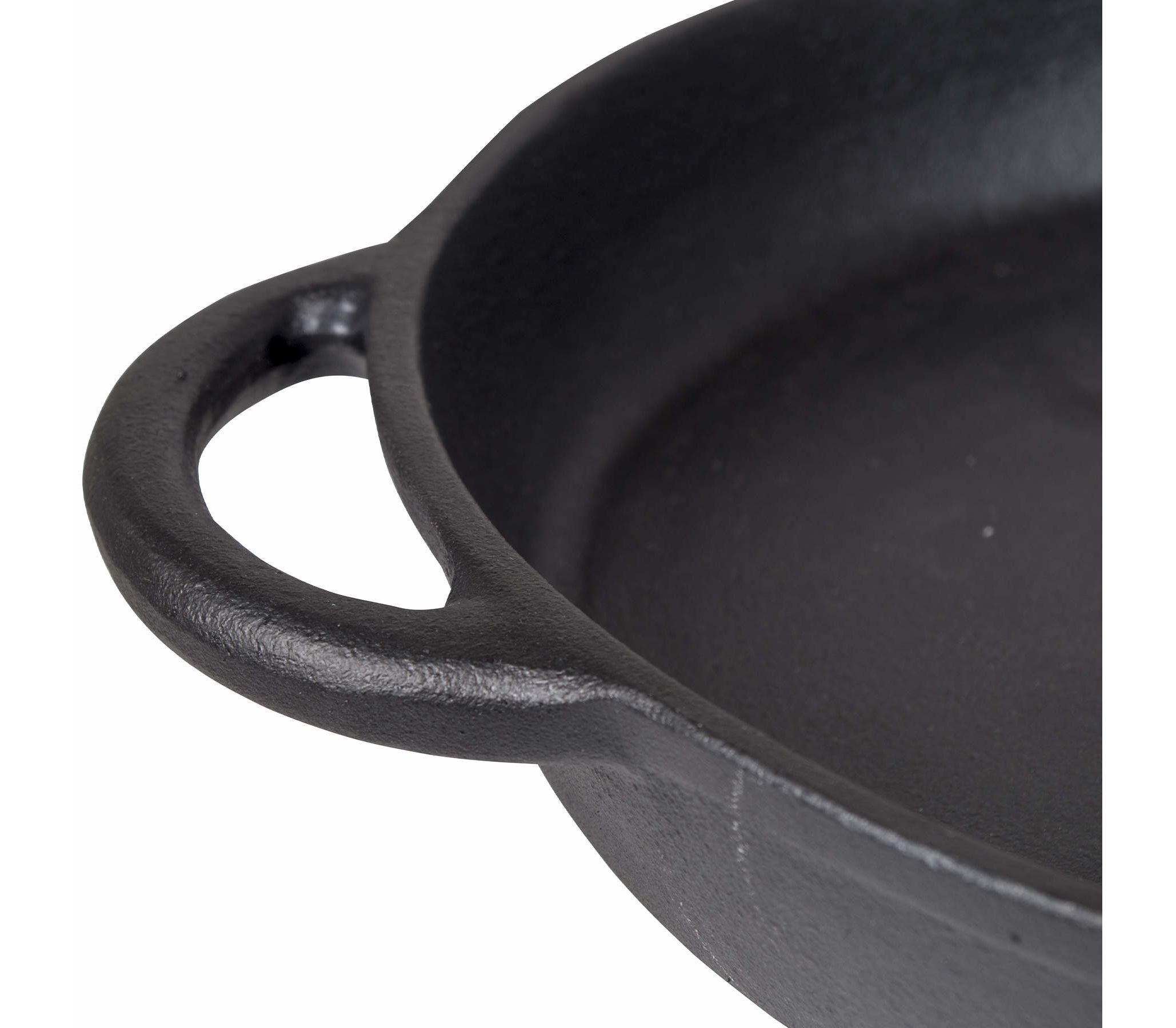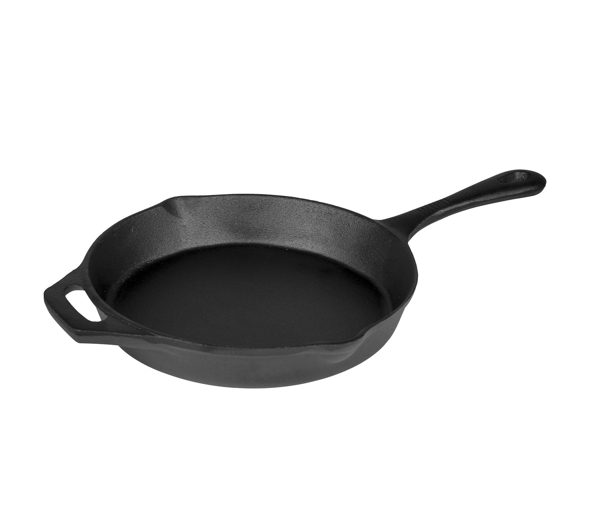 Bo-Camp Frying pan Dutch Oven 24 cm Black прекрасно подходит как для жарки, так и для запекания или даже фритюра. Благодаря предварительной закалке (pre-seasoned), сковородка защищена от коррозии, не требует дополнительной обработки перед первым использованием и имеет базовый антипригарный слой. Оборудована двумя сливными носиками, а также дополнительной ручкой для удобного перемещения. Выдерживает экстремальные температуры свыше 300 ºC без деформации, и будет служить годами.