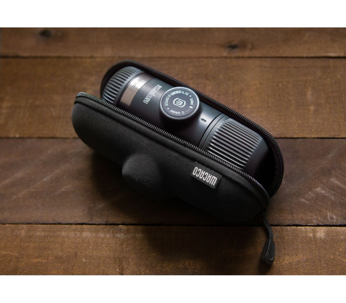 Чехол с жесткими стенками для ручной кофеварки Wacaco Nanopresso. Защищает устройство от царапин, ударов, пыли — с ним вы можете смело складывать кофеварку Wacaco в походный рюкзак, корзину для пикника или бардачок авто.