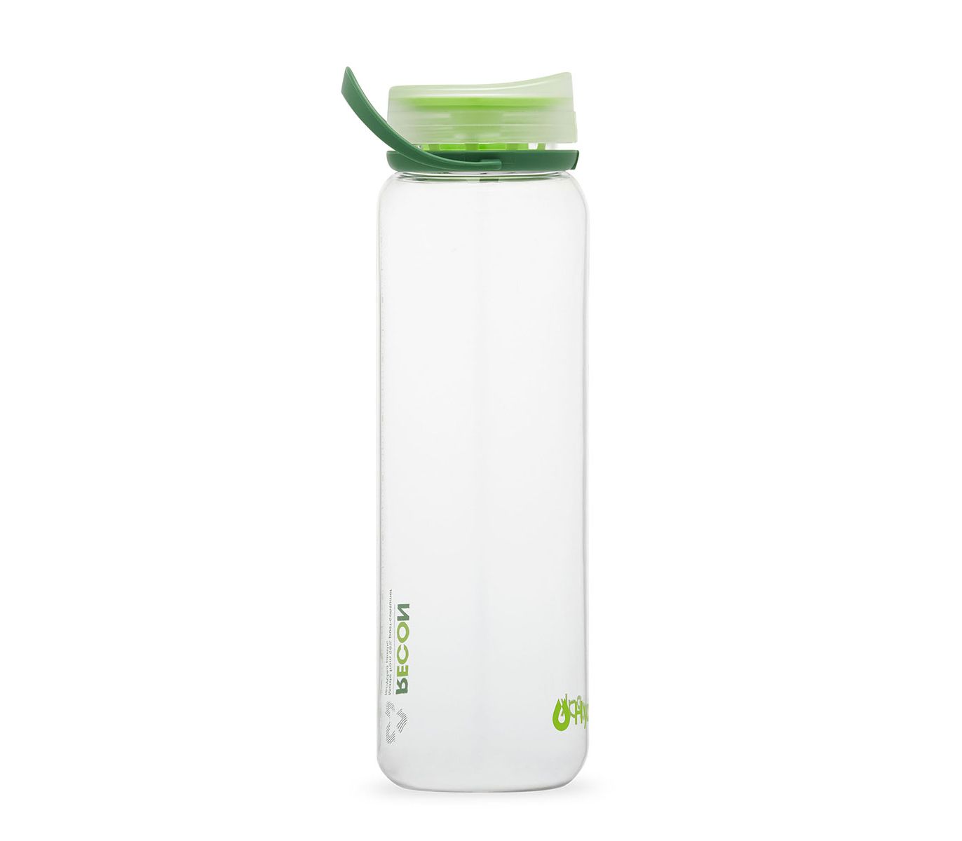 - Бутылка изготовлена из пищевого пластика тритана марки Renew. Он отличается прочностью, не впитывает запахи, не влияет на вкус воды и не окрашивается.