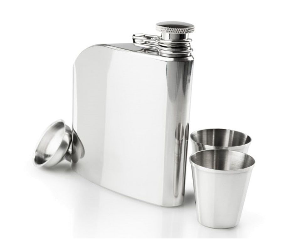 Элегантный и практичный набор - вместе флягой из пищевой нержавеющей стали на 177 мл. вашего любимого напитка в комплекте прилагается воронка для наполнения и две рюмочки.