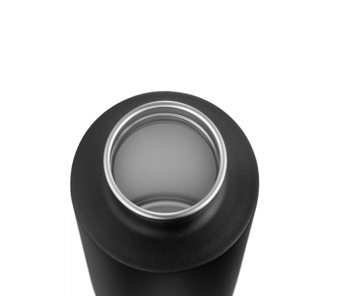 Діаметр отвору для пиття – 44 мм, що робить наповнення та очищення пляшки легким і зручним. Кришка оснащена петлею для зручності перенесення та забезпечує 100% герметичність. Нержавіюча сталь гарантує міцність і довговічність виробу.