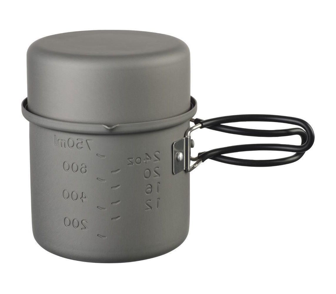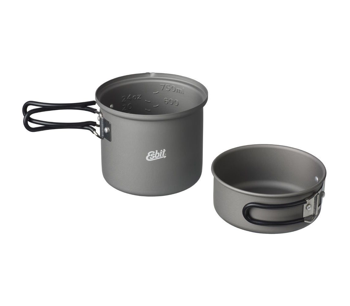 Большая алюминиевая кастрюля Esbit, которая вмещает около 1 литра. Это больше, чем просто кастрюля из твердого анодированного алюминия. На самом деле это два в одном! По крайней мере, если вы этого захотите. Потому что крышку большой кастрюли можно также использовать как кастрюлю. Она вмещает около 475 мл. Благодаря складным ручкам из нержавеющей стали обе кастрюли занимают очень мало места и их легко хранить. Большая кастрюля имеет индикатор объема, а в комплекте также идет практичный сетчатый мешок.