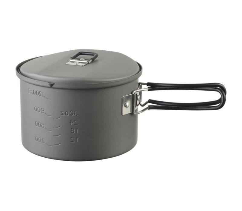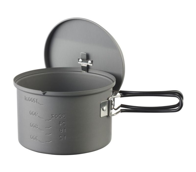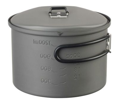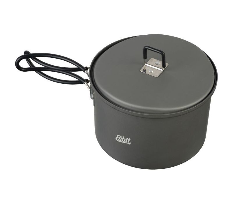 Esbit PT1600HA компактный котелок из легкого анодированного алюминия. Весит всего 258 г, поэтому его можно прихватить с собой в любой поход, восхождение, пикник. Объема 1600 мл достаточно для приготовления чая или блюда для 3-4 человек. Внутри котелка есть мерная шкала в миллилитрах и унциях. Котелок оснащен складными ручками, имеющими обрезинку, предотвращающую обжиг, а также крышкой с держателем. В комплект входит практичная сетчатая сумка.