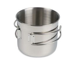 Стальная кружка со складной ручкой. На внутренней стороне стенки есть мерная шкала с шагом 125 мл.