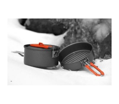 Набор портативной посуды FEAST 1 - самый маленький из всей посуды серии FEAST. Он рассчитан на 1-2 человек. Притом, что набор очень компактен и легок, решена главная задача - это удобство в эксплуатации. Новая полноценная ручка с фиксатором позволяет удобно держать посуду при готовке, а при нажатии кнопки фиксатора позволяет сложить ручку и собрать набор в компактный вид для экономии пространства при хранении и транспортировки. Ручка выполнена из приятного на ощупь теплоизолирующего материала.