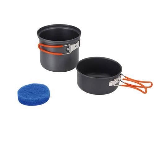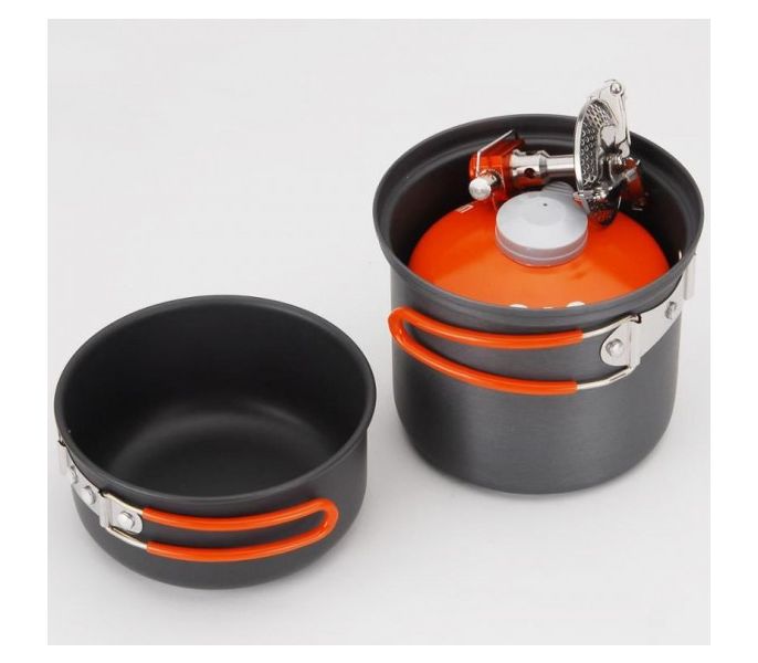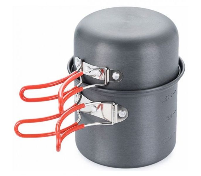 Компактный и легкий набор для одного-двух человек. Состоит из котелка, крышки-миски и губки. Внутрь помещается газовый баллон и миниатюрная горелка. Не окисляется даже при длительной эксплуатации. Упакована в сетчатый мешочек.