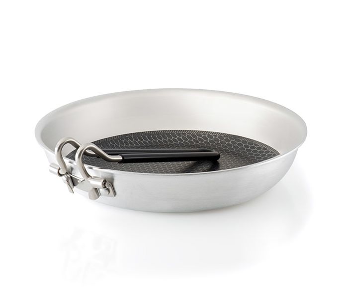 Нержавеющая сталь из серии Gourmet покрывает сердечник сковородки GSI Outdoors Gourmet 10 "Frypan из тяжелого алюминиевого сплава, который равномерно нагревается, а также равномерно отдает тепло, создавая идеальные условия для жарки. Благодаря блестящей устойчивости к коррозии и прочности поверхности, которую может обеспечить только нержавейка, именно она является лучшим материалом для изготовления туристического кухонной утвари в течение десятилетий.