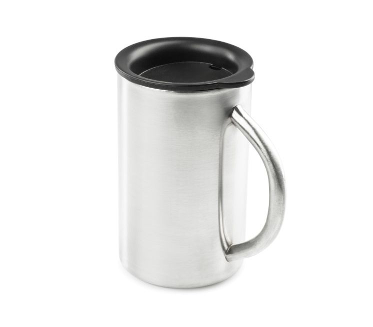 Стальная туристическая термокружка со съемной пластиковой плотной крышкой и ручкой, остающейся всегда прохладной, объемом 450 мл. Использование вакуумной изоляции, а также наличие крышки обеспечит постоянную температуру напитка на протяжении долгого времени - как холодной зимой, так и жарким летом.