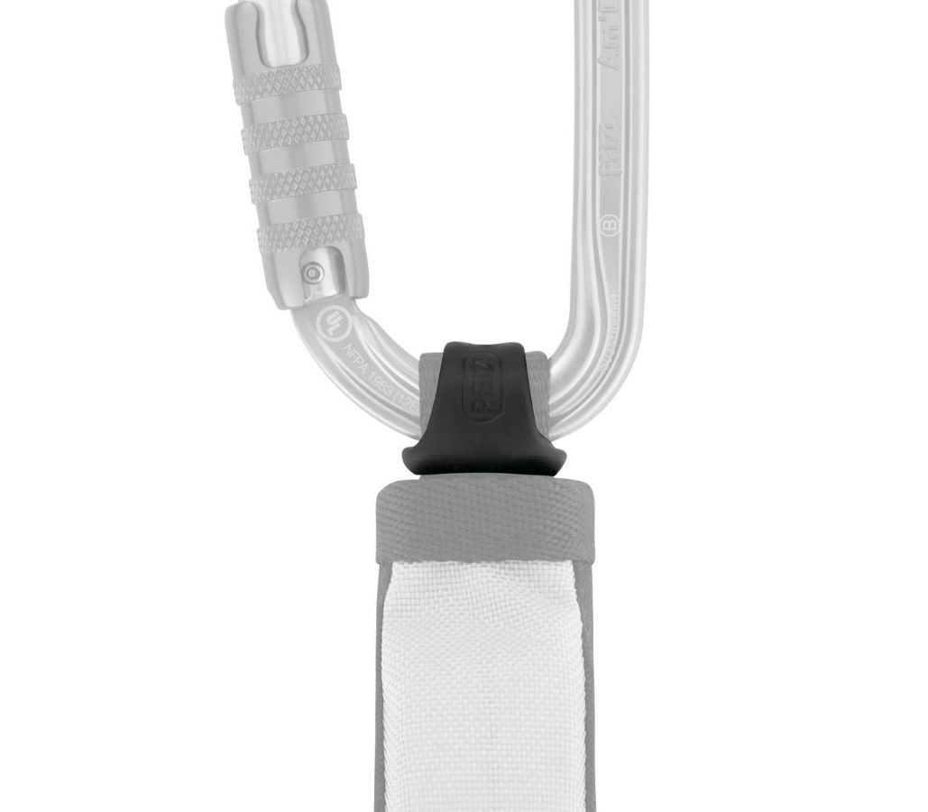 Обмежувач ходу карабіна. Виконує дві функції: утримує карабін в правильному положенні в відтяжці і захищає стропу від зносу. Не використовується на непрошитій петлі.