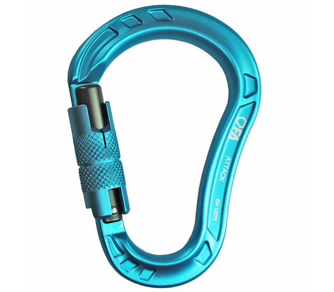 Attack-великий карабін грушоподібної форми з автоматичною муфтою. Використовується для організації навішування, розвішування великої кількості спорядження на страхувальній станції, зі спусковими і страхувальними пристроями або спуску за допомогою вузла Мунтера (UIAA).
