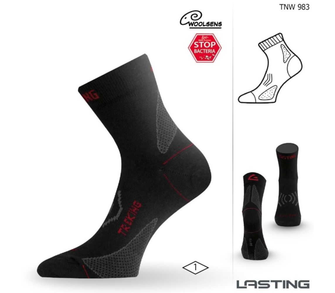 TNW - це тонкі трекінгові шкарпетки, які містять мериносову вовну, що є унікальним природним матеріалом та забезпечує чудову теплоізоляцію і відведення вологи. Шкарпетка в'язана з одношарової гладі в частині навколо щиколотки і двошарової гладі в стопі. Еластичний тейп навколо супінатора забезпечує ідеальну посадку шкарпетки на нозі та підвищує працездатність під час занять спортом - ноги довше не втомлюватимуться.