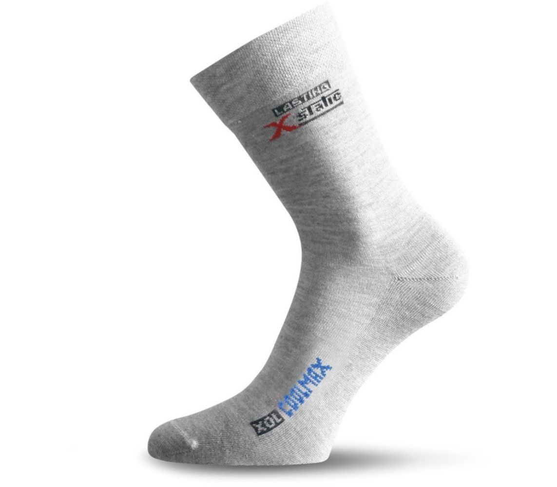 Функціональні шкарпетки від бренду Lasting. Ідеально для трекінгу весною чи влітку. Виготовлені із еластичних, штучних волокон. Шкарпетки відмінно прилягають до ноги і запобігають неприємному сповзанню. Вони довші за звичайні моделі Lasting - зручно використовувати з трекінговими черевиками. Області стопи, пальців і п'яти, які піддаються великому навантаженню, посилені подвійним шаром матеріалу. Розробники використали тонкий шов типу Россо, який не натирає. Lasting XOL здатні відводити вологу і мають антибактеріальні властивості.