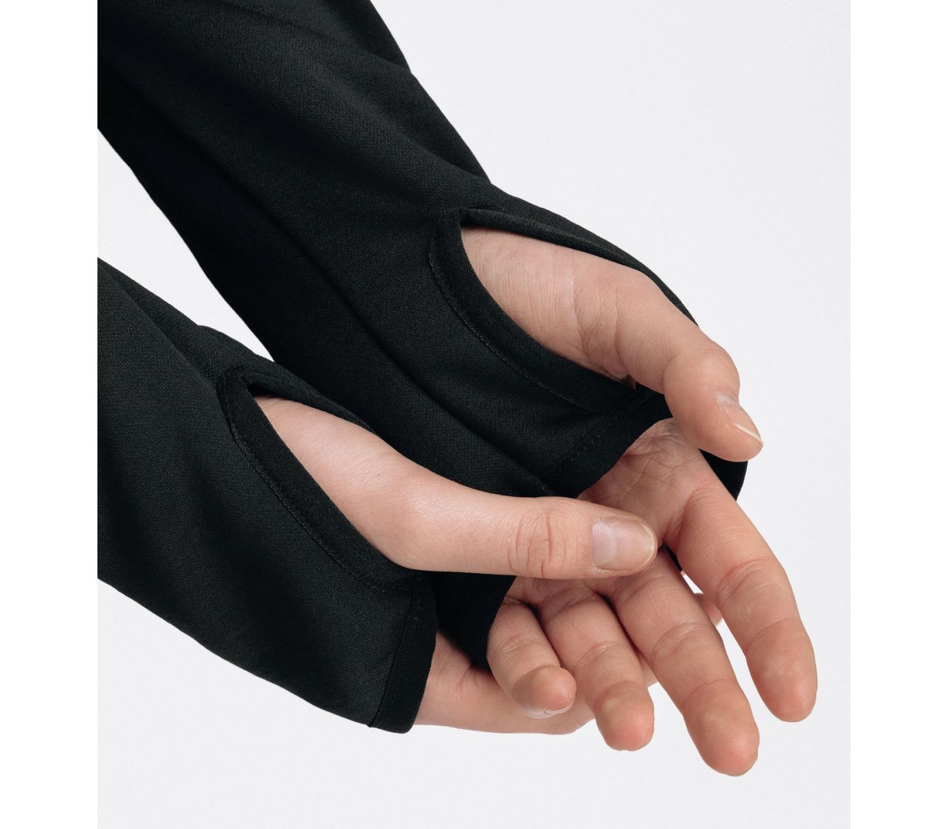 • Подовжені манжети з прорізами для великих пальців замінюють мітенки. Утеплюють зап'ястя й долоні, лишаючи пальці відкритими, запобігають ковзанню між рукавичками та верхнім одягом.