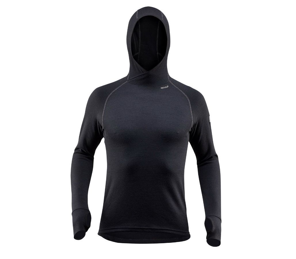 Термофутболка Devold Expedition Man Hoodie - двошарова термофутболка з капюшоном, з мериносової шерсть, спеціально розроблена для екстремальних погодних умов і протестована в численних полярних експедиціях. Внутрішній шар складається з переплетення волокон мериносової вовни і синтетики. Завдяки такому комбінованому складу, досягається відмінна терморегуляція, при якій тепло тіла збережуться всередині, а зайва волога відводиться на поверхню тканини і випаруються. Ідеально підходить для зими і міжсезоння, для туристів, військових, мисливців, рибалок.